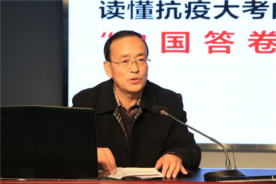 学校党委书记姜德民以“十三五”时期,尤其是以高等教育、文化卫生事业、国防军队建设等方面取得举世瞩目的巨大历史性成就为切入点,以世界的眼光对东西方制度模式进行比较,阐释中国模式的八个特点,全面解读了“十四五”发展规划和2035年远景目标。他鼓励全校师生争当新时代中国特色社会主义的建设者,要有高站位、高眼光看待当下百年交汇的特殊历史节点,坚定四个自信,坚持中国模式,为实现中华民族伟大复兴而努力奋斗。