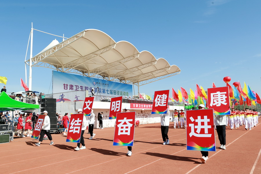 5月31日上午,甘肃卫生职业学院第七届田径运动会在学校体育场拉开帷幕,全校近万名师生共同参与这一年一度的校园体育盛事。全体校领导和各职能部门、二级学院负责人出席开幕式,开幕式由副校长康逢民主持。
