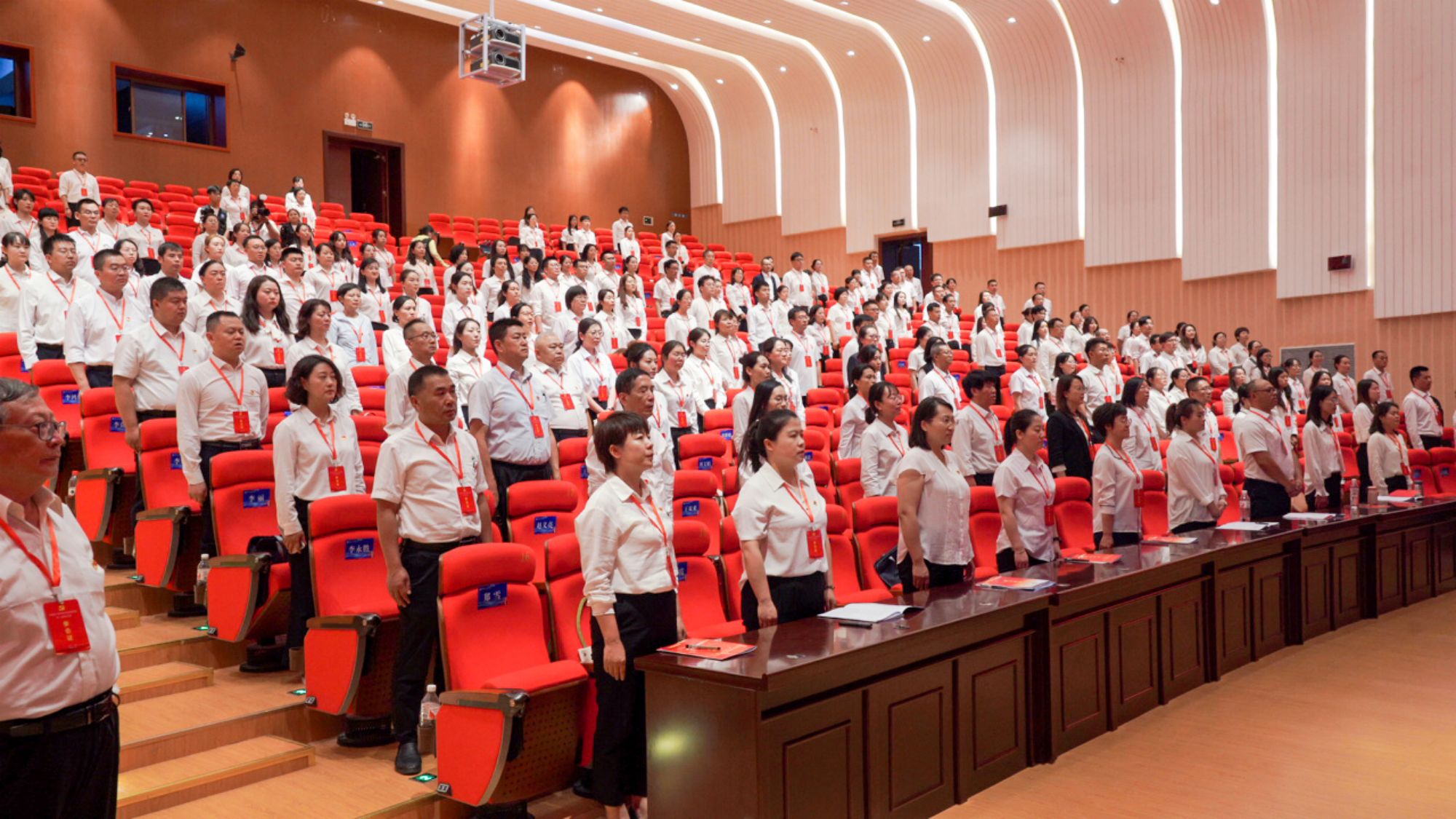 伴随着雄壮的《国际歌》,中国共产党甘肃卫生职业学院第一次党员大会胜利闭幕。
