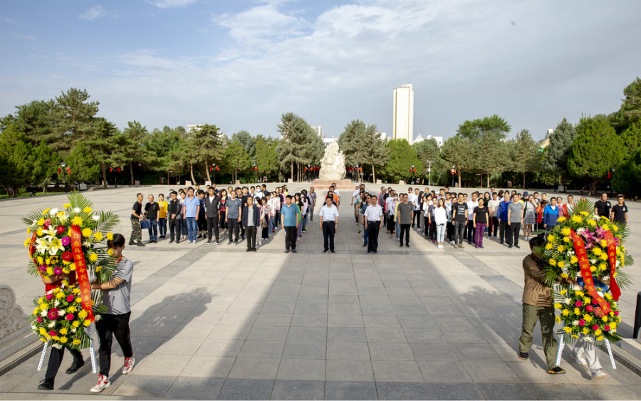 第二天一大早,学院全体党员参观中国工农红军西路军纪念馆,向西路军革命烈士敬献花篮,深深地三鞠躬,缅怀先烈;党员面对鲜红的党旗,重温入党誓词,随后,姜德民书记在中国工农红军西路军纪念碑下讲授党课。