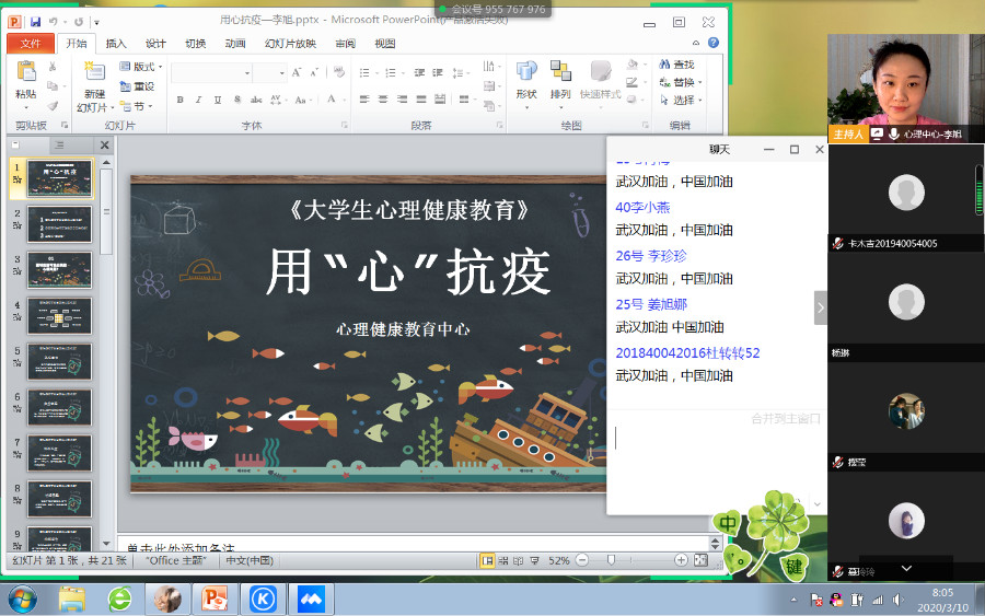 在新型冠状病毒肺炎疫情防控期间,为做到疫情防控和教学工作两不误,按照学校线上教学工作安排,3月9日,学校线上教学如期开课。全校270门次课程、153个教学班将从今天开始实施线上教学,264名教师和7911名学生相约云端。