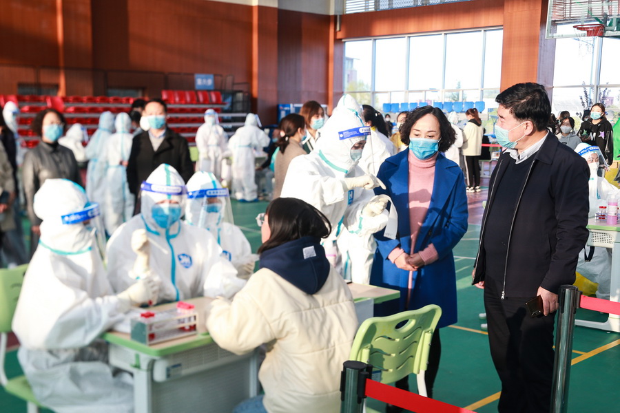 10月22日下午,学校对全校学生进行核酸检测,各班级学生分时段分批次有序参加检测,不留死角、盲区,不漏一人。学校党委书记姜德民,党委副书记、校长任晖等校领导前往采样现场,对核酸检测工作进行督导。