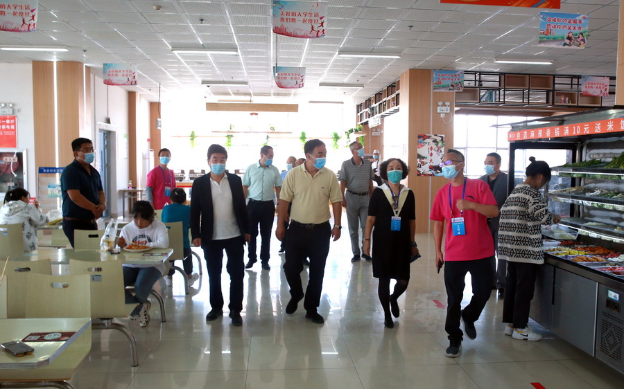 张晓东一行实地察看了学校南门、新生报到点、食堂等重点部位的疫情防控工作,同时,听取了校领导关于学校新生开学报到、疫情防控、校园安全的工作汇报。