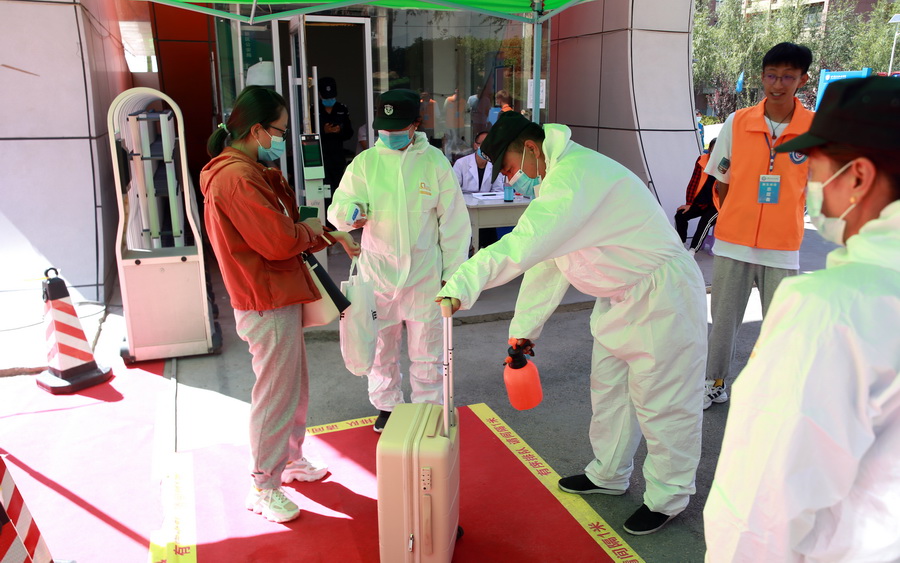 本次报到采取线上线下相结合方式进行(高职学生线上线下结合报到注册;“2+3”学生线下报到注册)。报到期间,学校专门在飞机场、火车东站、火车西站、汽车东站、汽车南站及兰州客运中心设置了校外迎新点,为新生提供便捷的接送服务。根据疫情防控工作的需要,新生在乘坐学校大巴和入校前,均由迎新工作人员查验了甘肃省健康出行码、国务院通信大数据行程卡、48小时内核酸检测报告。在校门口,新生们排队有序进行体温检测、核酸检测、身份核查、行李消杀后进入校园。各二级学院分别设立了迎新报到处,为新生办理报到手续、发放报到材料、帮忙托运行李、答疑解惑等,用贴心的服务让新生感受到家的温暖。虽然离开了家长,但是在工作人员、志愿者的热情引导和帮助下,新生们顺利完成了报到、分班、缴费、智慧校园卡和卧具的办理领取等一系列报到流程。