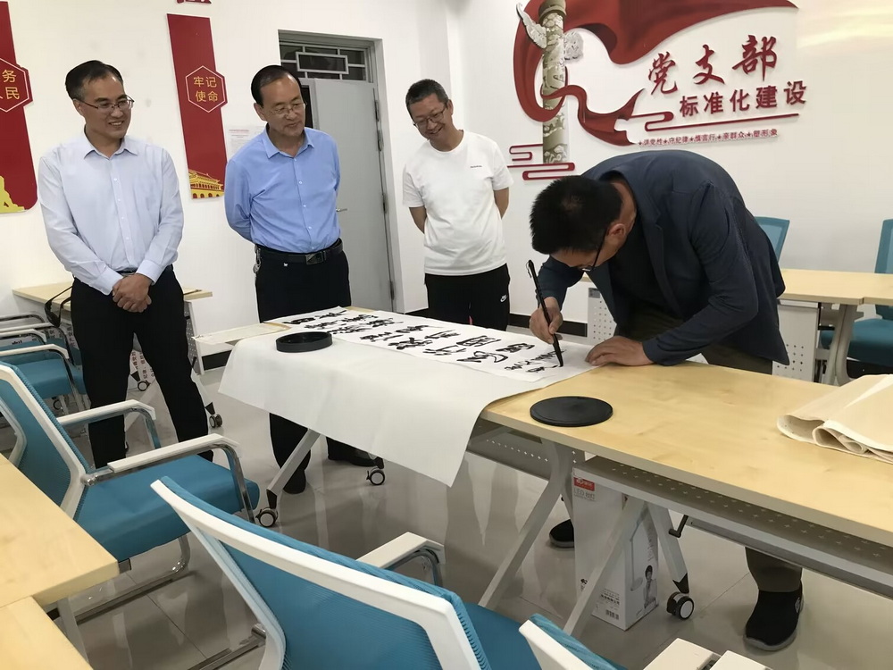 随后,进行了“翰墨颂党恩,金句照我心”支部硬笔书法比赛颁奖。在颁奖现场,还邀请了评委老师蔺勇翀同志挥毫泼墨,为支部此次活动题字“百年伟业铸辉煌,勇毅前行国运昌”,以此祝福我们的党我们的祖国繁荣昌盛再铸辉煌,也为此次比赛画上了圆满的句号。