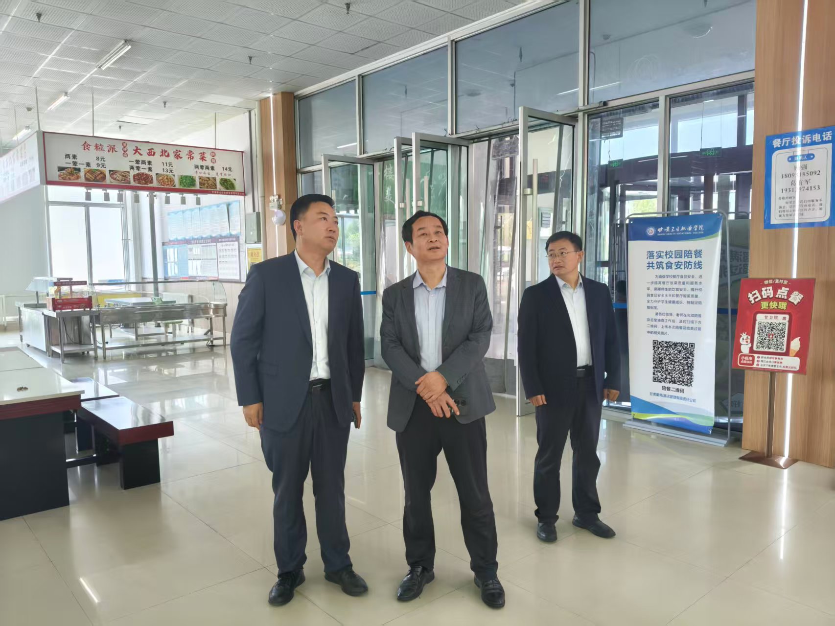 李春一行先后来到中医学院、护理学院、药学院,实地参观了各学院的实验实训室,深入了解了学校在人才培养、产教融合、校企合作等方面的情况。并专程深入学生食堂,对食品安全工作情况进行了解,提出了意见建议。对学校建设发展取得的成效和守护师生舌尖上的安全工作给予了充分肯定。他强调,甘肃卫生职业学院作为甘肃省唯一一所医药卫生类高职院校,在省内办学声誉良好,在西北乃至全国具有一定的影响力。勉励在场的工作人员要站在职业教育发展的最前沿,紧紧围绕立德树人根本任务,奋进担当,着力提升学校人才竞争力和社会影响力,服务学校向更高目标发展。