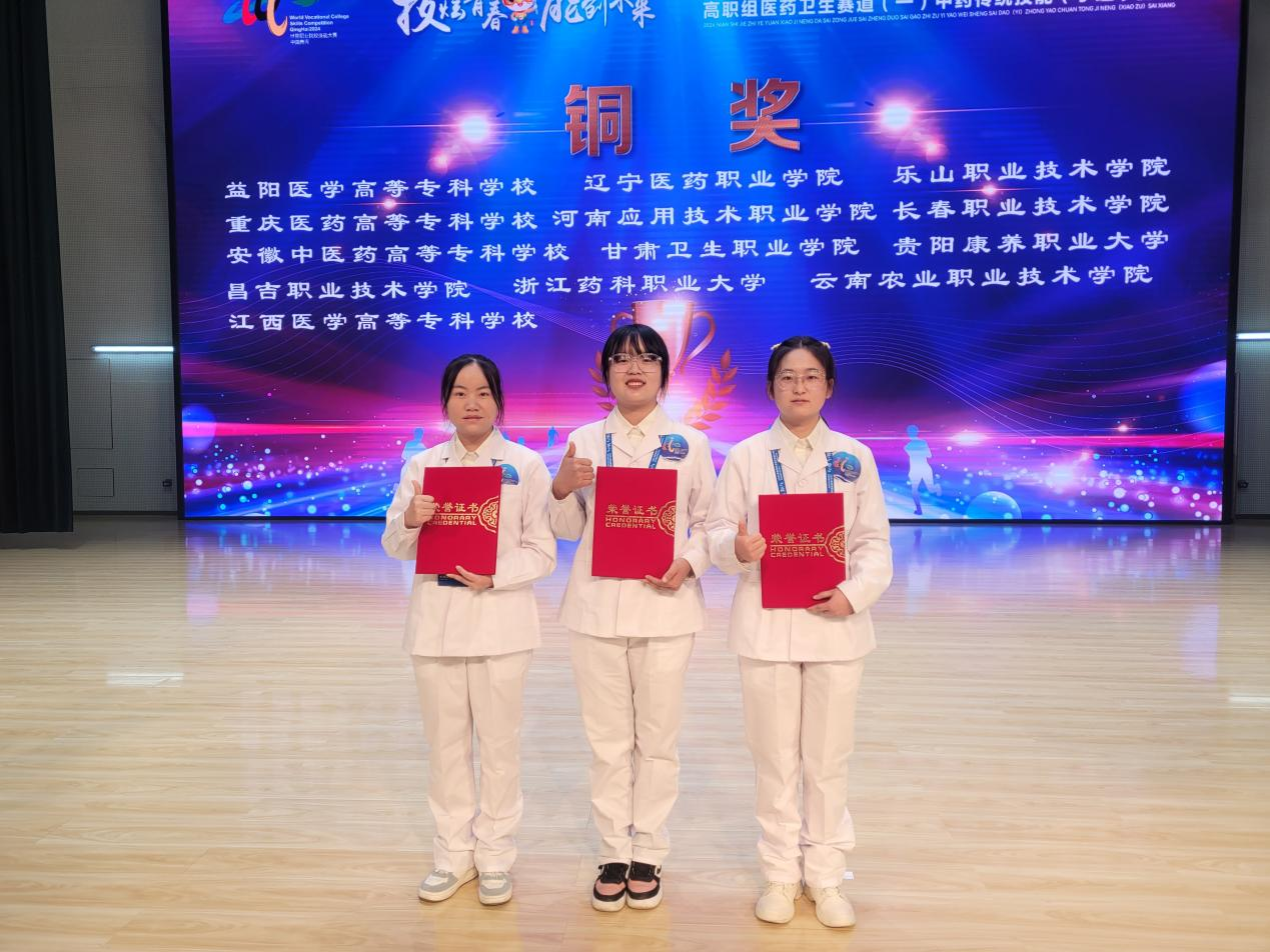 10月28日至11月1日,2024年世界职业院校技能大赛总决赛医药卫生赛道一(中药传统技能赛项)争夺赛在青海卫生职业技术学院成功举办。来自全国各地的55支优秀参赛队,共190名参赛选手同台竞技。我校药学院选派由陈方圆、宋爽老师指导的丁芳、贾敏、肖晓童团队参赛,以平行组第3名的成绩荣获铜奖。
