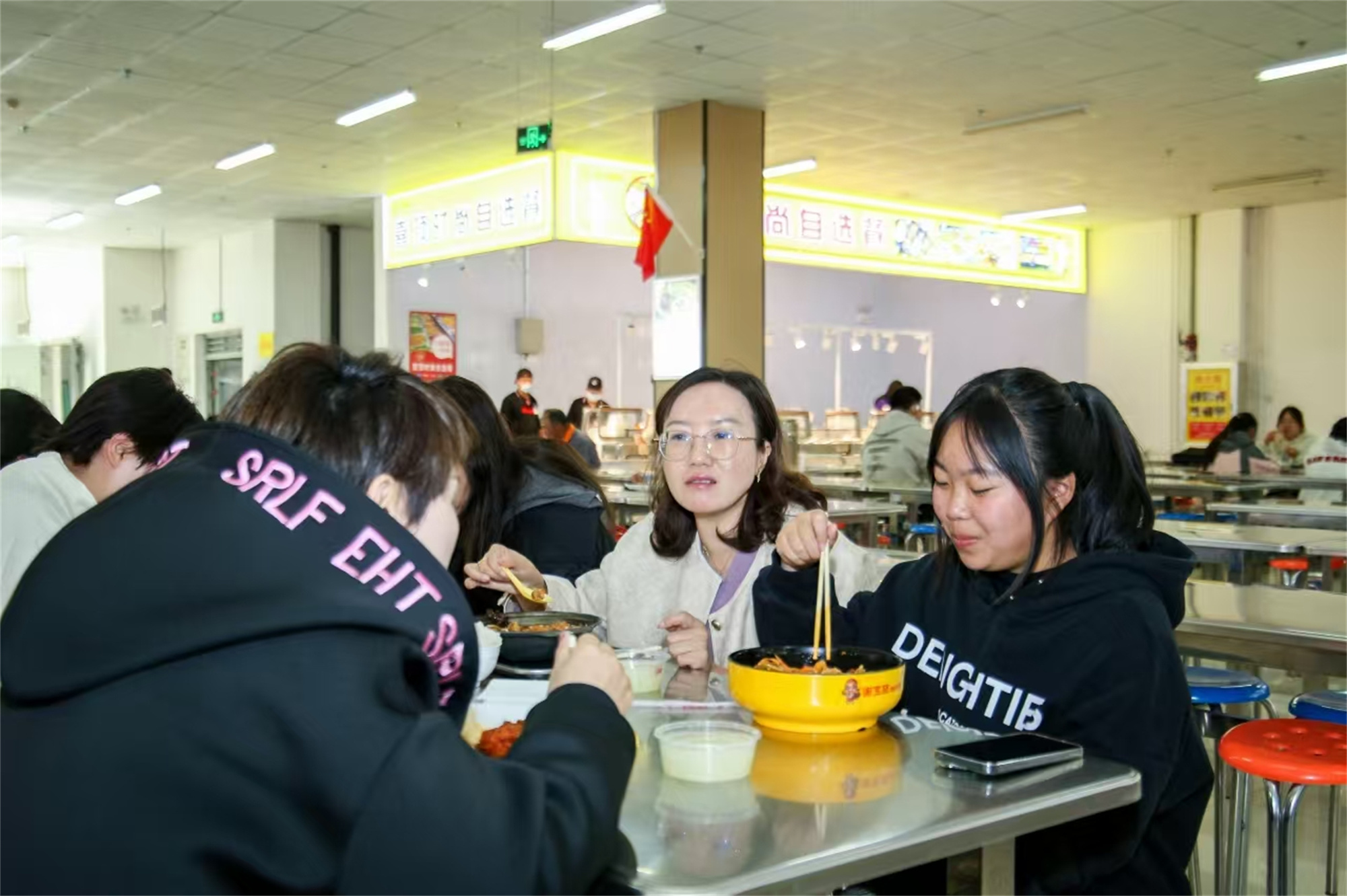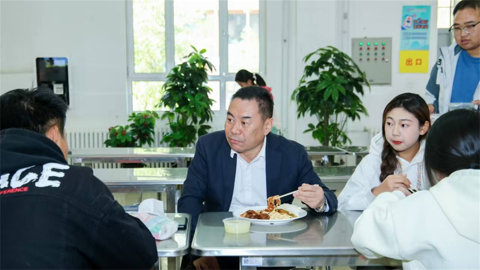 学校领导深入食堂与学生共餐