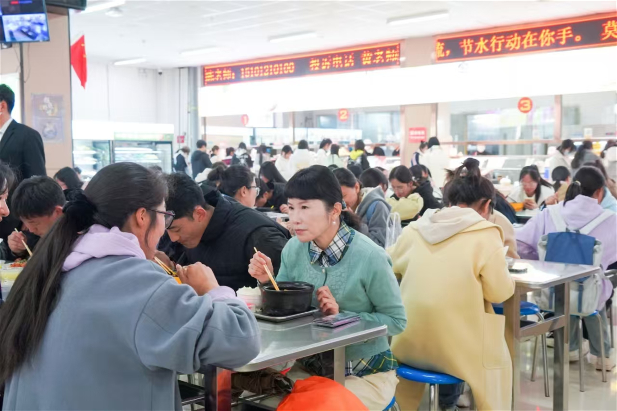 近日,党委书记包磊、纪委书记刘斌,副校长张军荣、杨频先后来到学生餐厅,了解检查食堂大厅就餐环境、饭菜质量及价格、餐饮保障、食品安全管理等情况,并与学生一起打饭就餐。