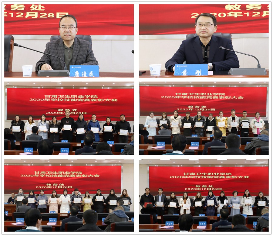 会上,康逢民副校长宣读了甘肃卫生职业学院《关于表彰奖励2020年学校技能竞赛获奖学生和优秀指导教师的决定》,2020年,各学院共举办了12项学生专业技能竞赛,共有1822名学生参加竞赛,49名教师荣获优秀指导教师奖,郭淑霞等326名学生分别荣获各专业技能竞赛一、二、三等奖。在欢快的颁奖曲中,与会领导分别为优秀指导教师和获奖学生代表颁发了奖状。