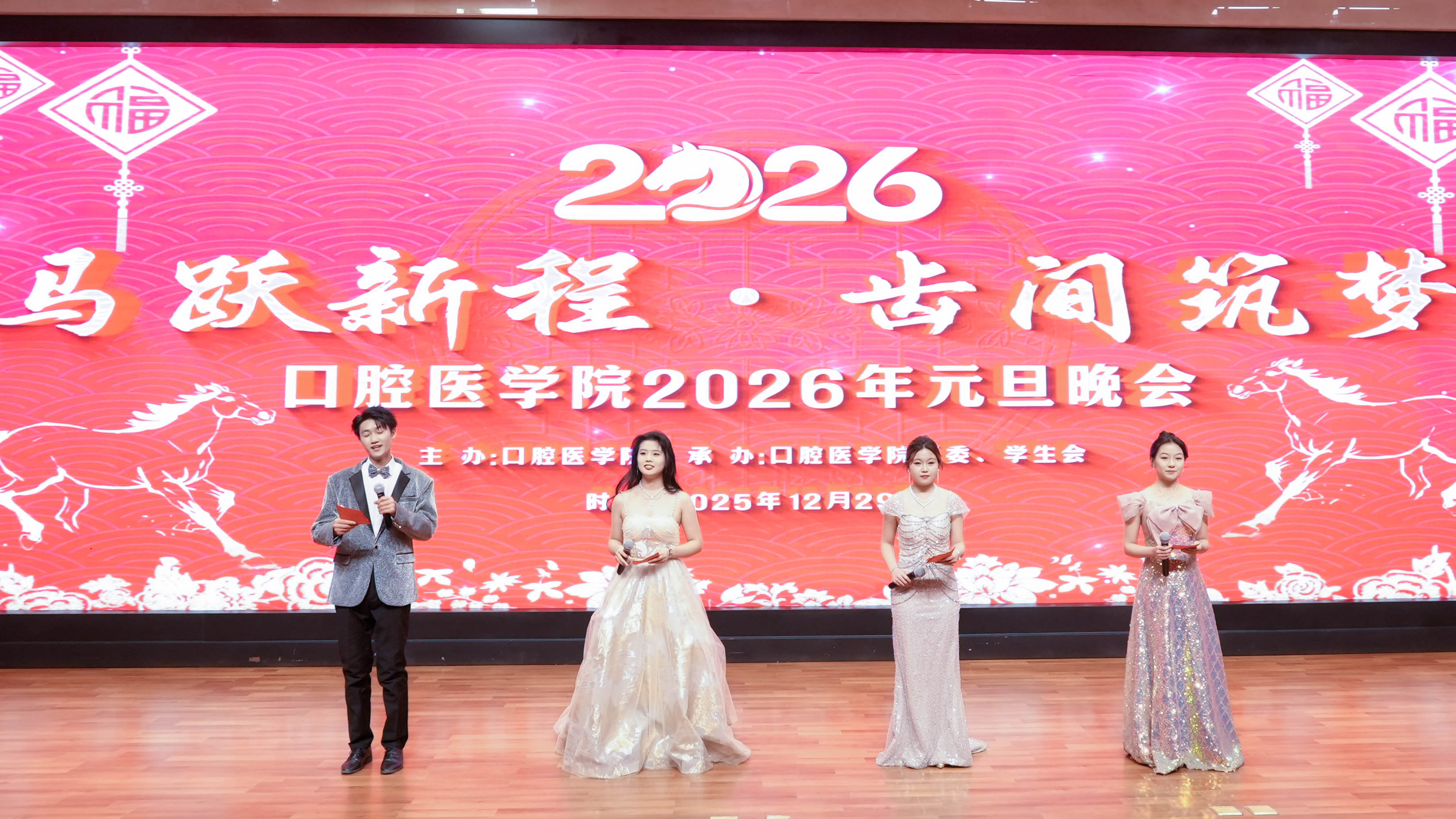 “金鞍送旧岁,玉马启新程”。12月29日晚,口腔医学院“马跃前程·齿间筑梦”2026年元旦晚会在笃学楼一号报告厅开幕,全院师生共赴新春之约。