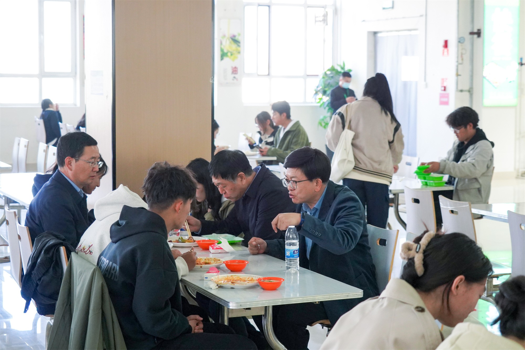 王建成校长一行认真查看了食堂的环境卫生、食材品种,向食堂管理人员了解食堂的经营情况,食品安全、消防安全各项措施落实情况。他强调,食品安全是学校安全工作的重中之重,有关部门要加大监督监管力度,食堂经营主体要切实履行主体责任,强化日常管理,让学生在学校食堂能够吃得放心、吃得安心。用餐期间,王建成校长与同学们亲切交流,详细了解同学们对食堂饭菜的价格、质量、种类和服务质量等方面的意见和建议,叮嘱同学们要均衡饮食、注意营养搭配,养成良好的饮食和卫生习惯,保持健康身体,勤奋学习,不负韶华。