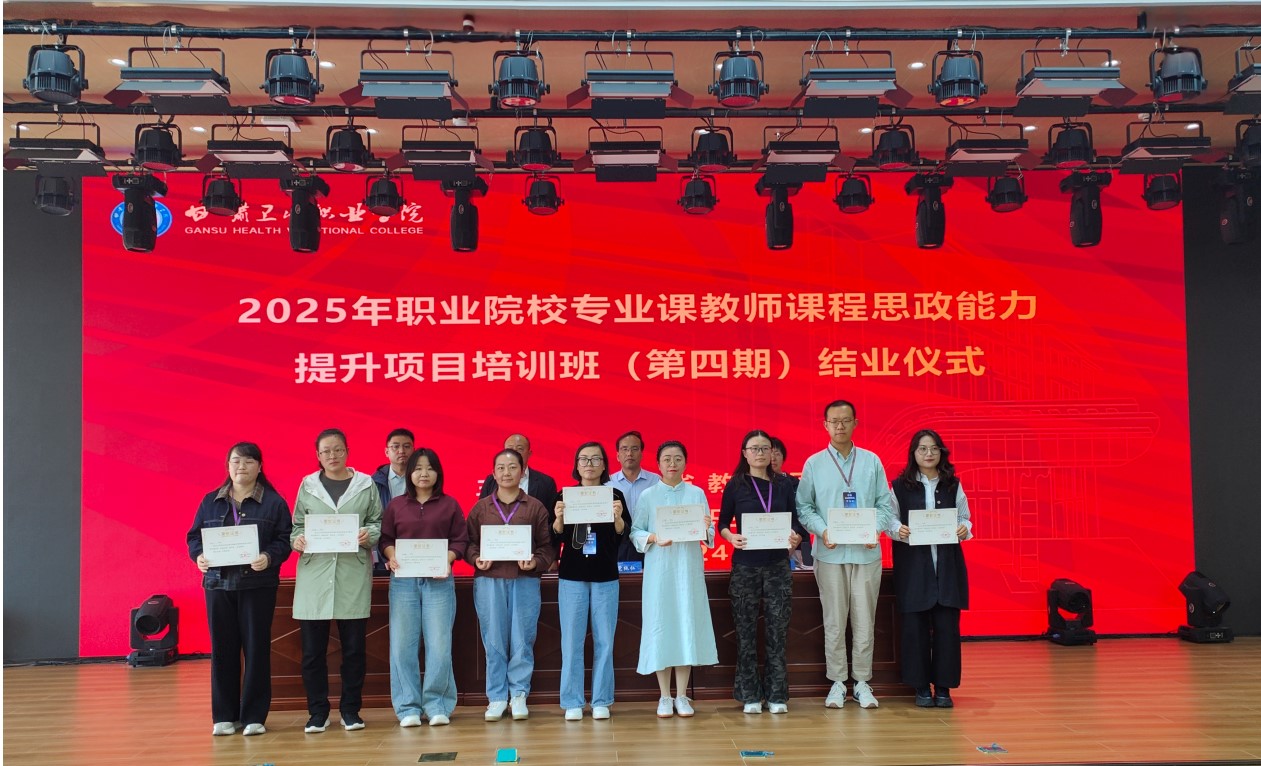 2025年9月24日,由甘肃省教育厅主办、甘肃卫生职业学院承办的“2025年度甘肃省职业院校专业课教师课程思政能力提升项目培训班”顺利完成全部四期培训,圆满结业。在第四期结业仪式上,学院党委委员、副院长党纯仁出席并致辞,来自全省50所职业院校的100名学员共同参加。9名优秀学员代表结合培训内容,现场分享了教学案例与学习感悟。仪式上还对优秀学员予以表彰。