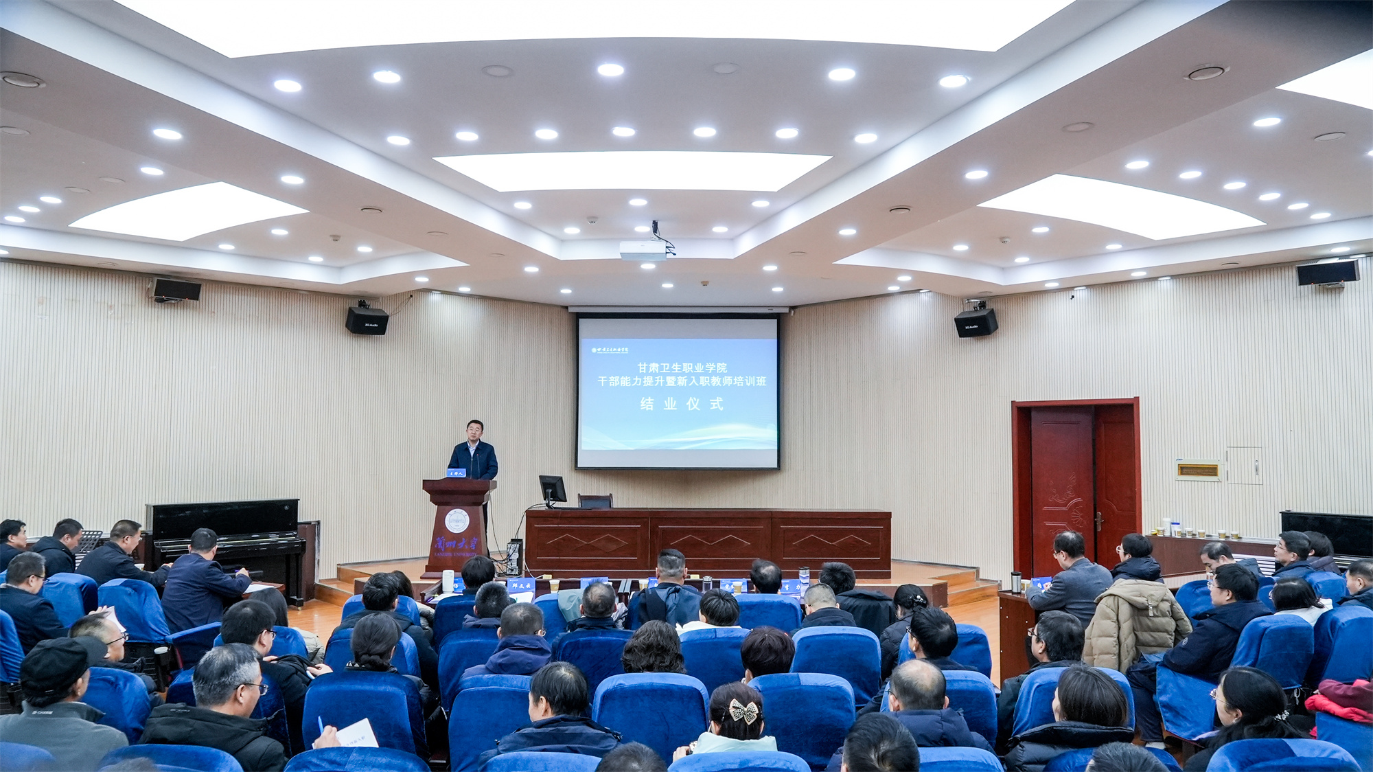 为深入学习贯彻党的二十届三中全会精神、全国教育大会精神和习近平总书记视察甘肃重要讲话重要指示精神,落实学校党委师德师风专项教育活动方案,全方位提升学校干部管理水平与新入职教师的专业素养。1月9日至10日,学校在兰州大学顺利举办甘肃卫生职业学院干部能力提升暨新入职教师培训班。学校党委书记包磊,党委副书记、校长王建成,在家领导班子,全体中层干部,部分行政管理部门人员、党务工作者,新入职教师共200余人参加培训。