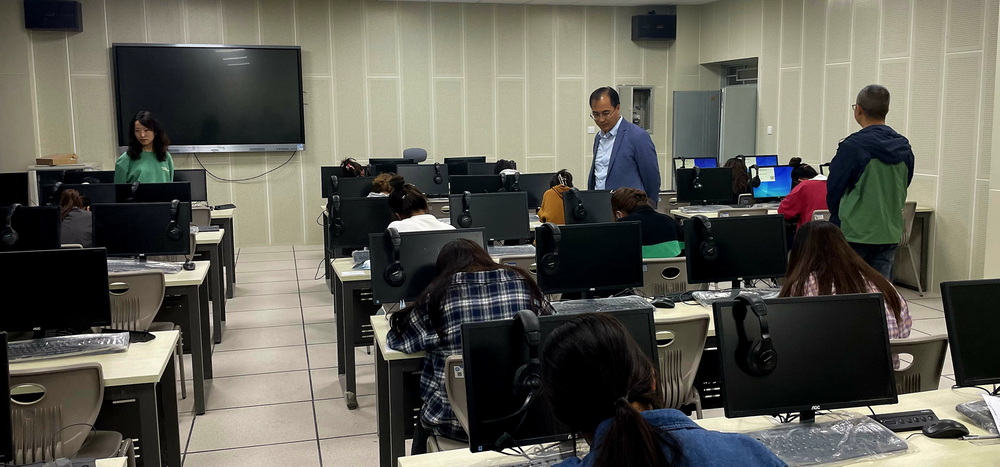 写作比赛在公共基础学院4楼语音室举办,共设立两个考场,根据中国职业技术教育学会、中国教育电视台、外语教学与研究出版社官方要求,此次写作比赛本着锻炼外语能力、沟通能力与思辨能力,激发学生学习热情,增强跨文化交际意识,开拓国际视野,提升语言综合运用能力等目的,参赛学生以考题中提供的文字信息为主题进行写作。
