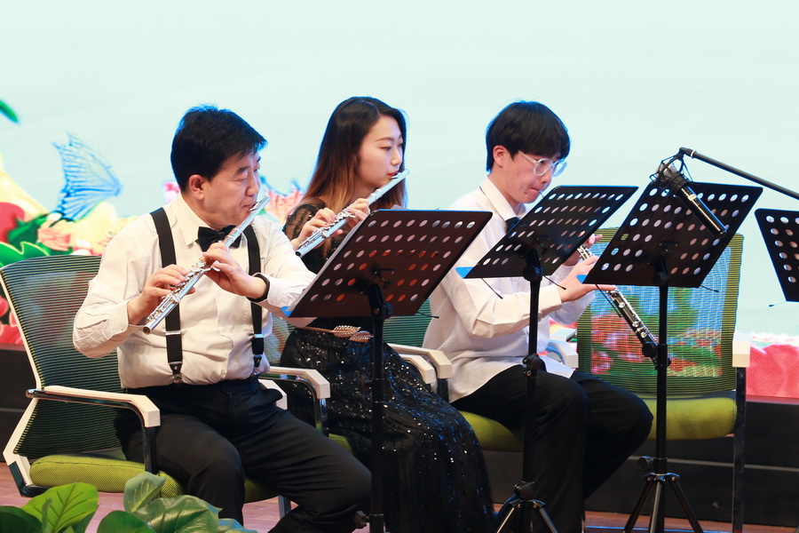 教工管乐队于3月3日正式开始本学期的训练。在民大实习学生的悉心指导下,管乐对成员们克服疫情的不利影响,坚持每周二、周三下午和每天晚上的业余时间进行训练,通过一点一滴地积累、坚持和进步,终于迎来了期待已久的汇报演出。19日晚21时30分,一首热情洋溢的合奏《祝你幸福》拉开了本场演出的序幕。白莹、付清清、杨力带来的单簧管三重奏《四小天鹅舞曲》风格轻松活泼,节奏干净利落;姜德民、王彬联袂演奏的《苏斯曼长笛二重奏》《维瓦尔第长笛二重奏》既活泼明丽又优美悦耳;李幸福表演的笛子独奏《牧民新歌》仿佛带领大家来到了美丽的内蒙古大草原。其他演出成员中,赵宇航的双簧管柔和软丽;牛归一的小号音色强烈明亮;郭胜财的长号辉煌、庄严、壮丽而饱满;苗建财的次中音号音色暗沉而庄严;蔡易含的萨克斯深沉而平静,富有感情;衡冰、柴子嫣的打击乐音色清晰明快,别具特色。
