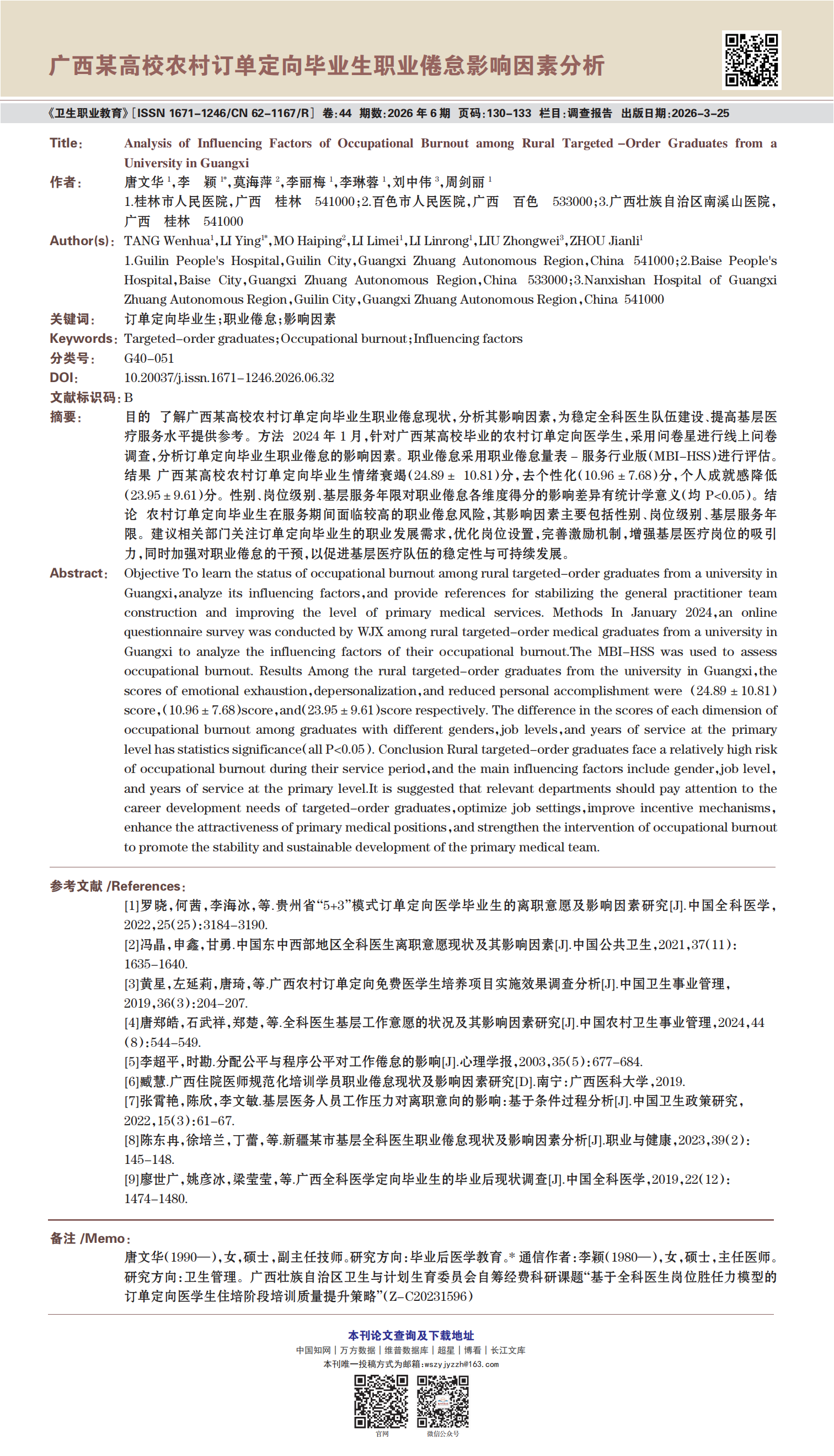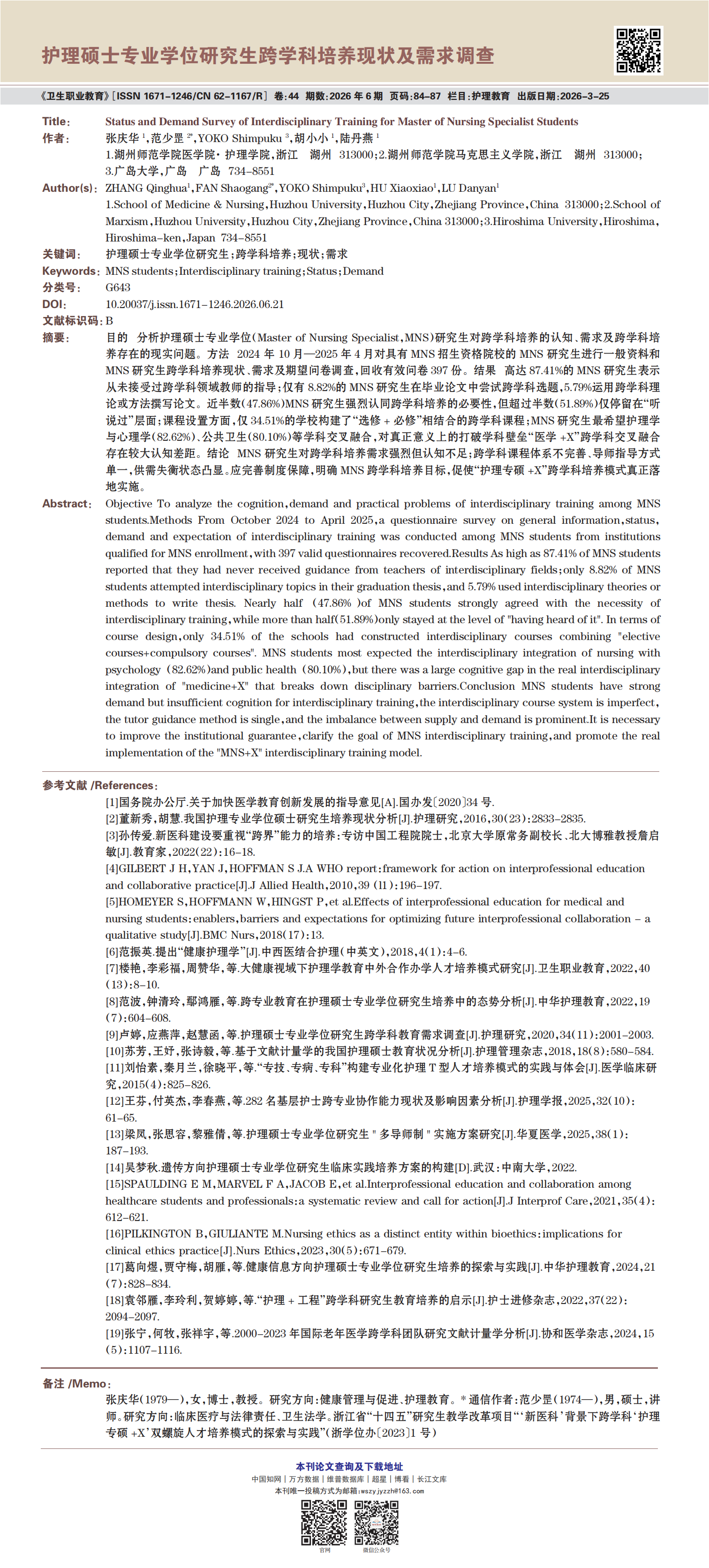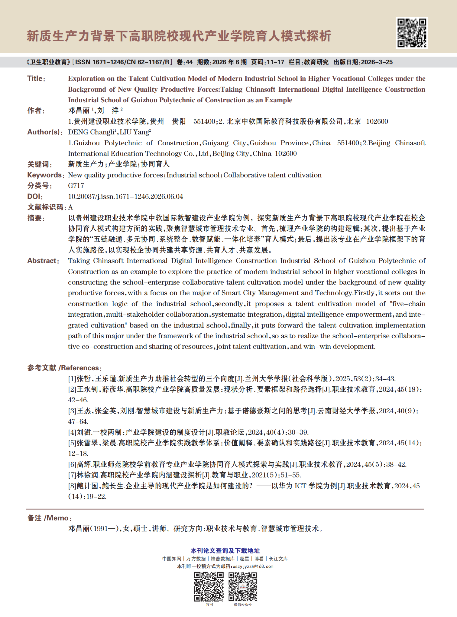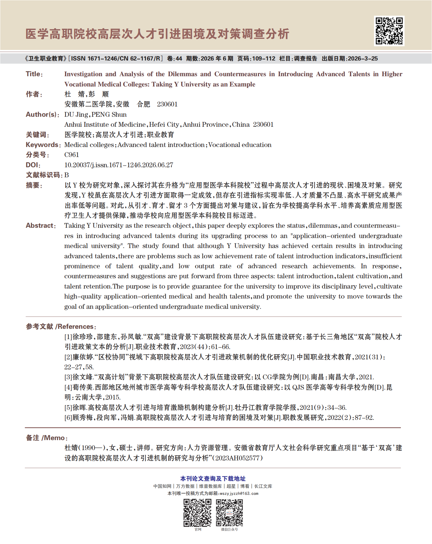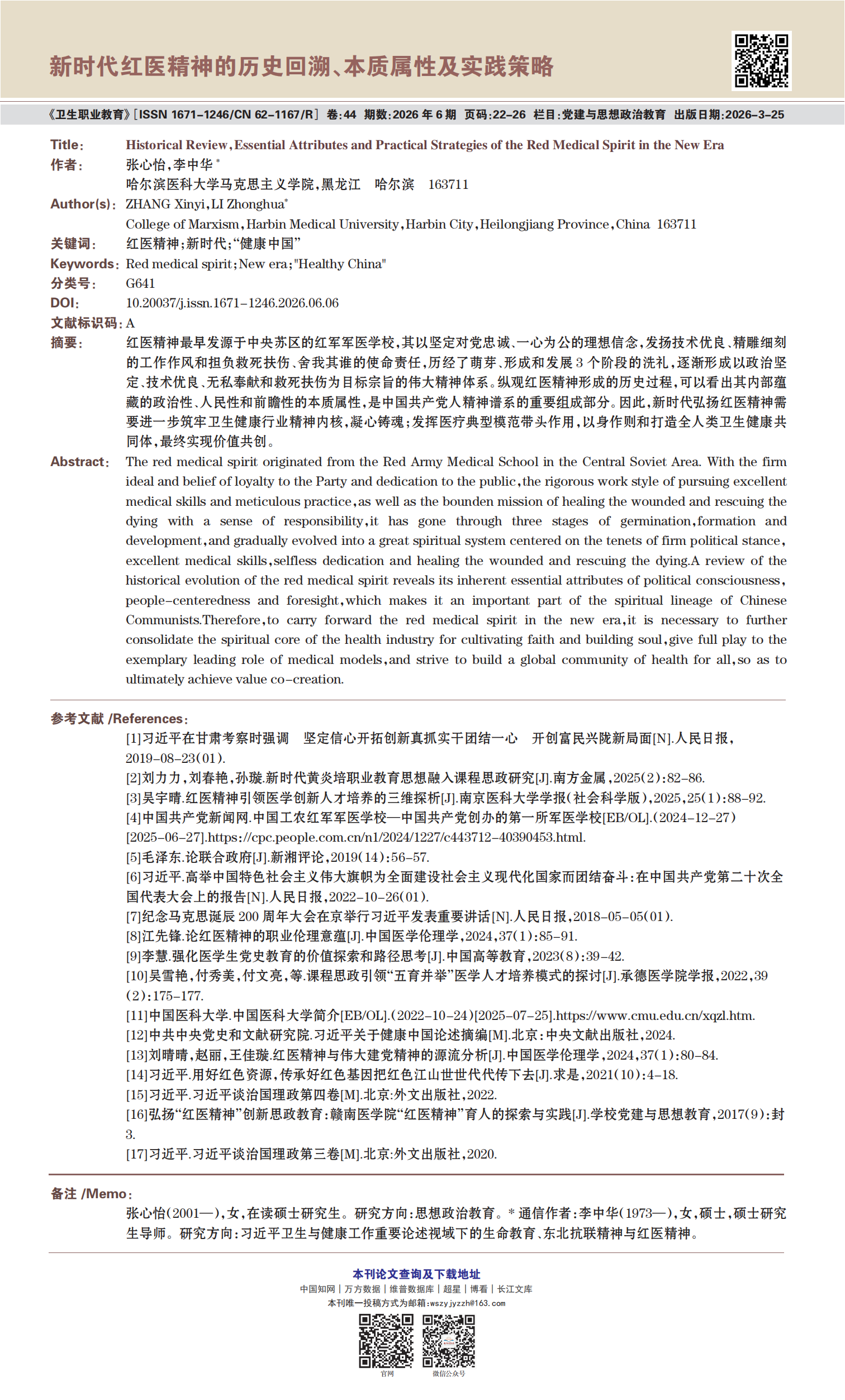 《卫生职业教育》2026年第6期精选论文展示