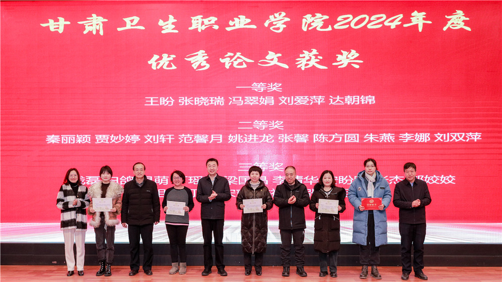 大会对甘肃卫生职业学院2024年度优秀学术论文、二级学院工作质量奖的获奖团体和个人进行了表彰,由学校领导为获奖代表颁发奖牌和荣誉证书。