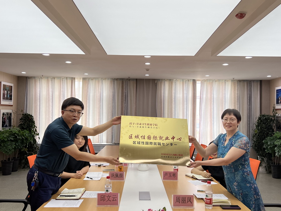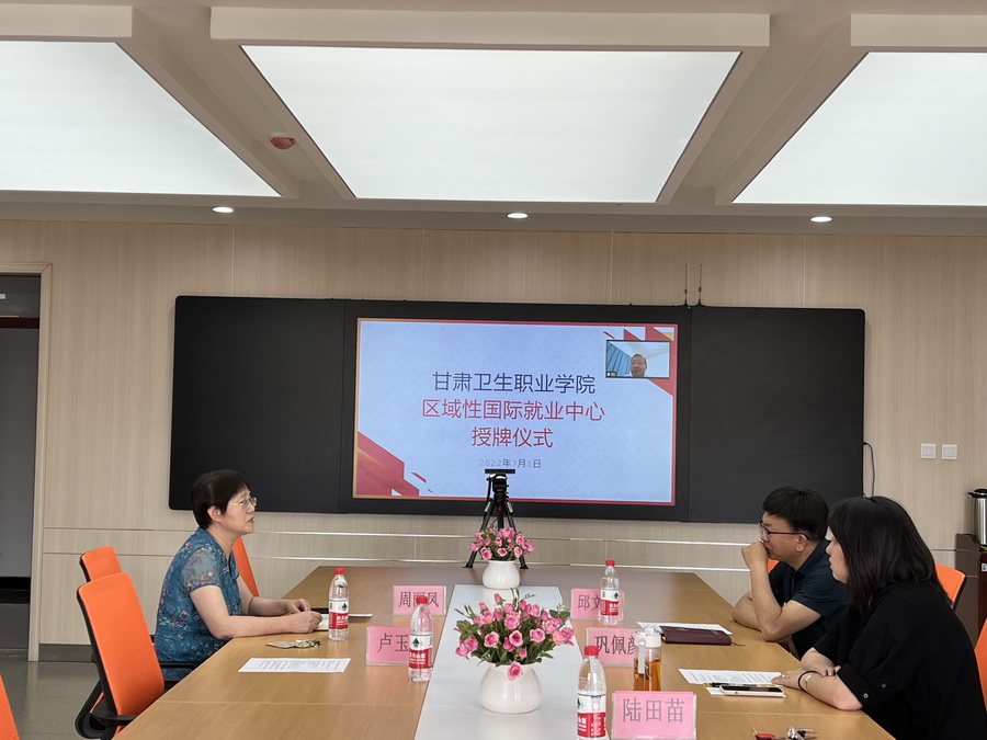 7月1日,“区域性国际就业中心”授牌仪式在甘肃卫生职业学院行政办公楼615会议室以线上视频形式隆重举行。日本医疗法人瑞穗会集团理事长高橋啓文、日本医疗法人瑞穗会集团事务长西本雅博、日本益事协同组合事务局长朝日纯一,学校副校长邱文云、国际交流中心主任周丽凤、临床护理学院副院长卢玉彬、国际交流中心副主任巩佩颜以及相关人员参加了仪式。仪式由日本益事协同组合中国代表和唯主持。