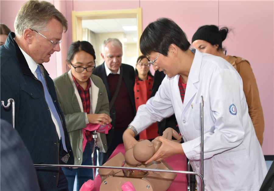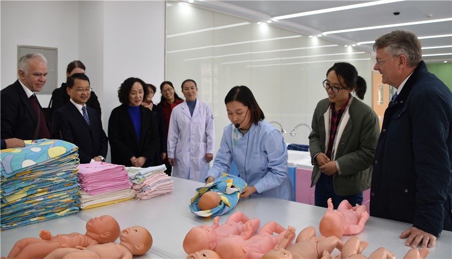 在临床护理学院,戈尔曼·登内博格司长对学校护理专业表示了极大的兴趣。他表示,学校临床护理实训中心让他感到非常震撼,下一步将他将派出德国护理专家前来我校,就老年护理专业课程设置、教学方法以及人才培养模式等方面进行交流和接受培训。