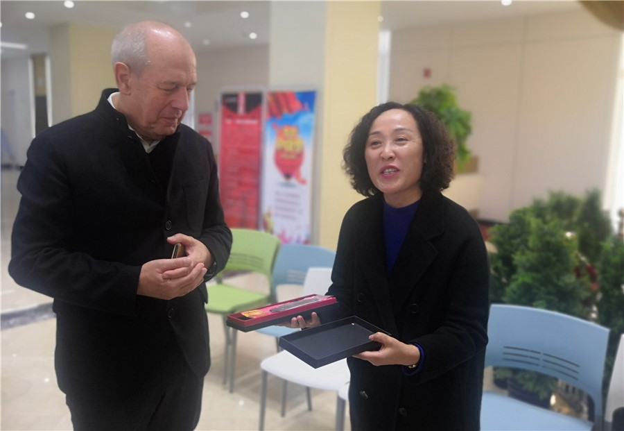 参观结束后,任晖校长代表学校向戈尔曼·登内博格司长一行赠送了礼物,并合影留念。