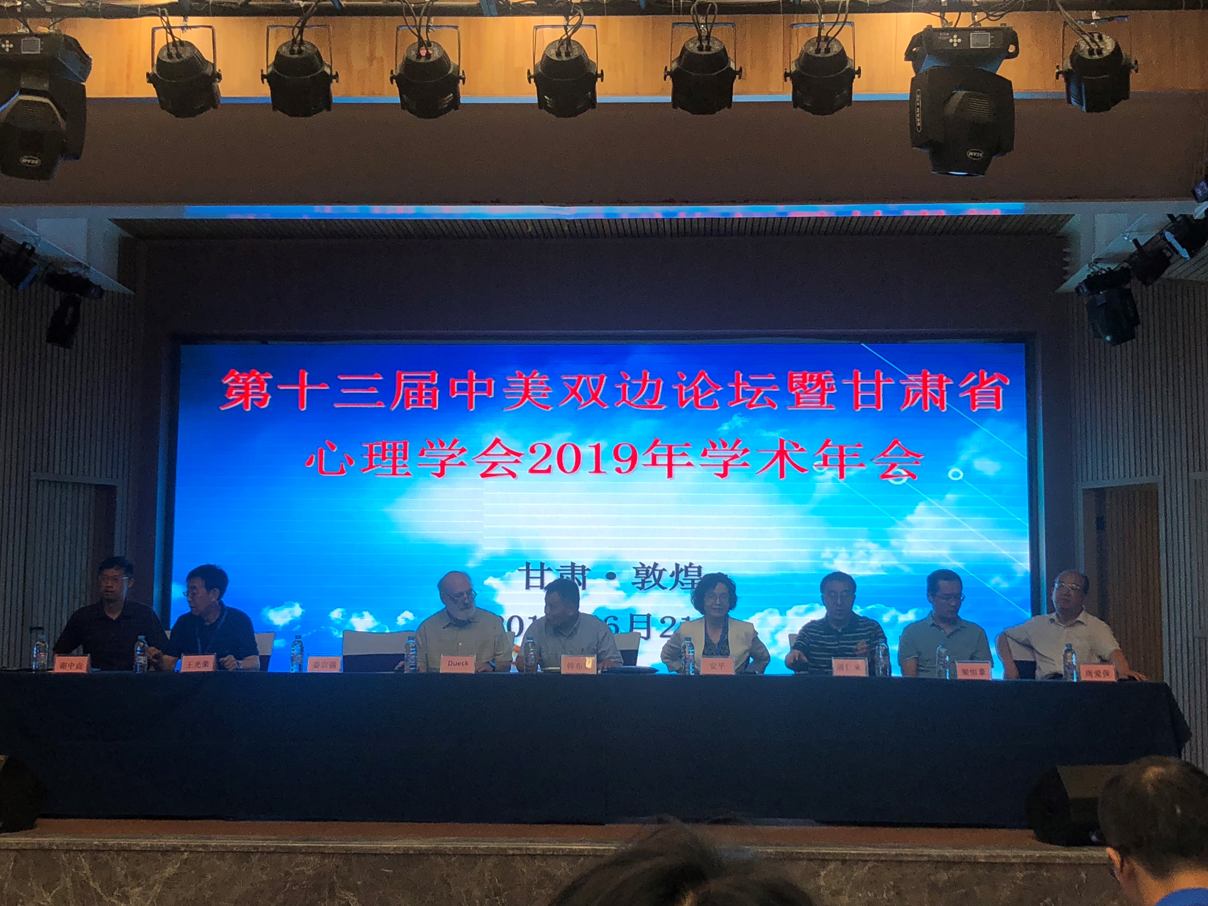 2019年6月21日—22日, 由甘肃省心理学会与西北师范大学主办,敦煌中学、敦煌市心理卫生协会承办的甘肃省心理学会2019年学术年会暨第十三届中美双边宗教文化心理学研讨会在敦煌隆重举行。甘肃省心理学会理事单位、会员,中美宗教心理学、文化心理学工作者,心理健康教育教研员、各中小学专兼职心理健康教师,各社区、医院、公检法司系统从事心理学工作人员共180余人参加会议。会议由中国心理学会理事长韩布新教授主持,甘肃省心理学会理事长、西北师范大学心理学院院长周爱保教授以及原甘肃省卫生厅副巡视员安平等15位心理学界的专家领导出席了本次学术年会。我校纪委书记、甘肃省心理学会职业院校学生心理健康指导委员会主任任世伟,副校长毕效武,心理健康教育中心副主任郭雯及心理健康教育中心干事高煜参会。