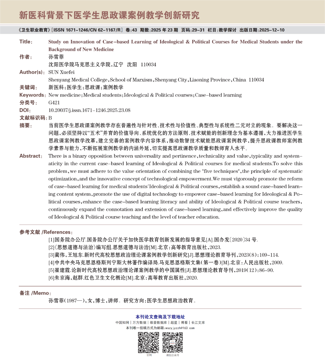 《卫生职业教育》2025年第23期精选论文展示