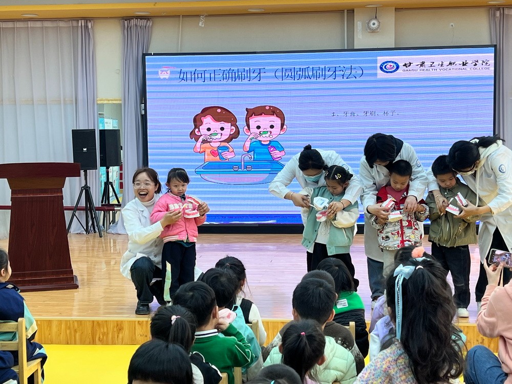 为贯彻落实《健康中国行动(2019-2030年)》和《健康口腔行动方案(2019-2025年)》的指导方针和政策,提高幼儿园儿童的口腔健康意识,培养良好的口腔卫生习惯,预防和减少口腔疾病的发生,3月26日下午,医学技术学院口腔医学系师生赴兰州新区第三幼儿园开展以“关爱口腔,健康成长”为主题的宣教和义诊活动。