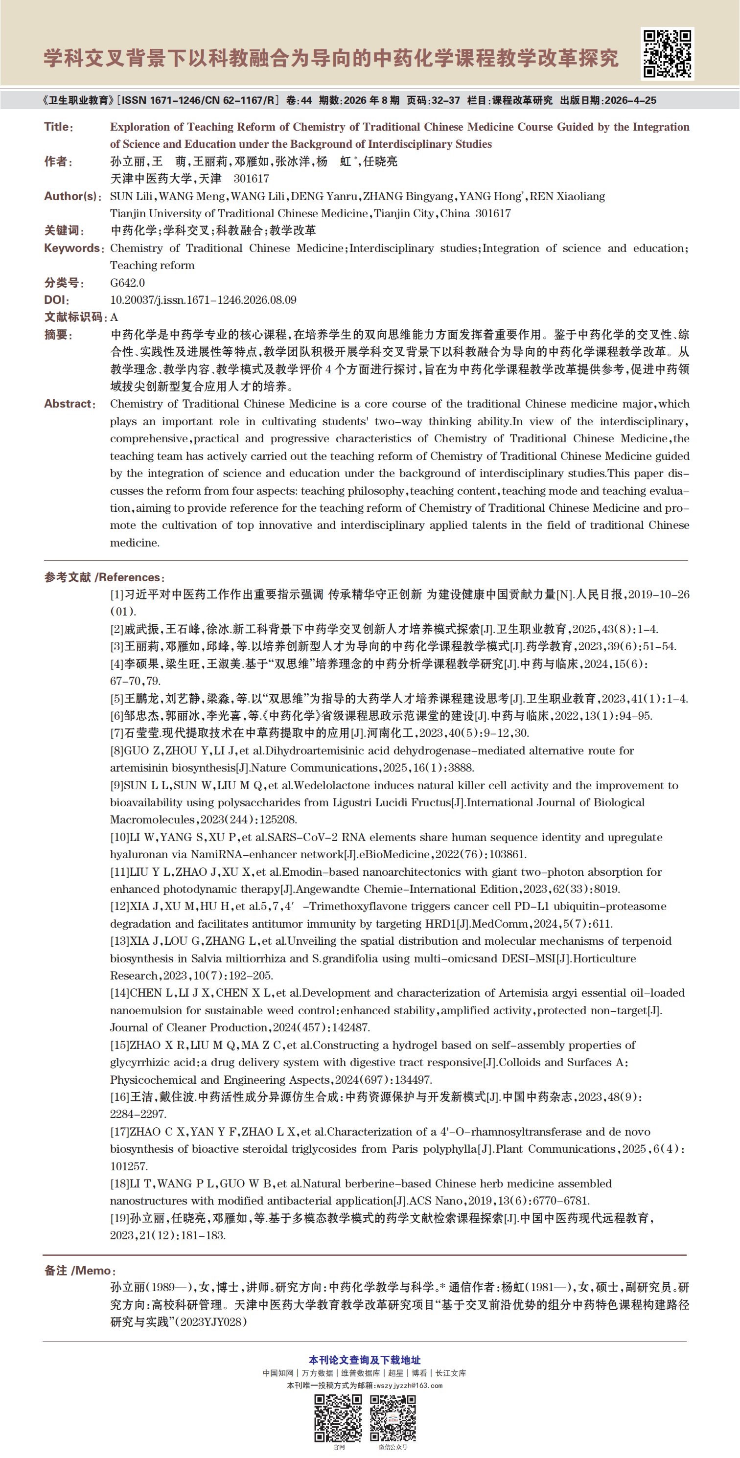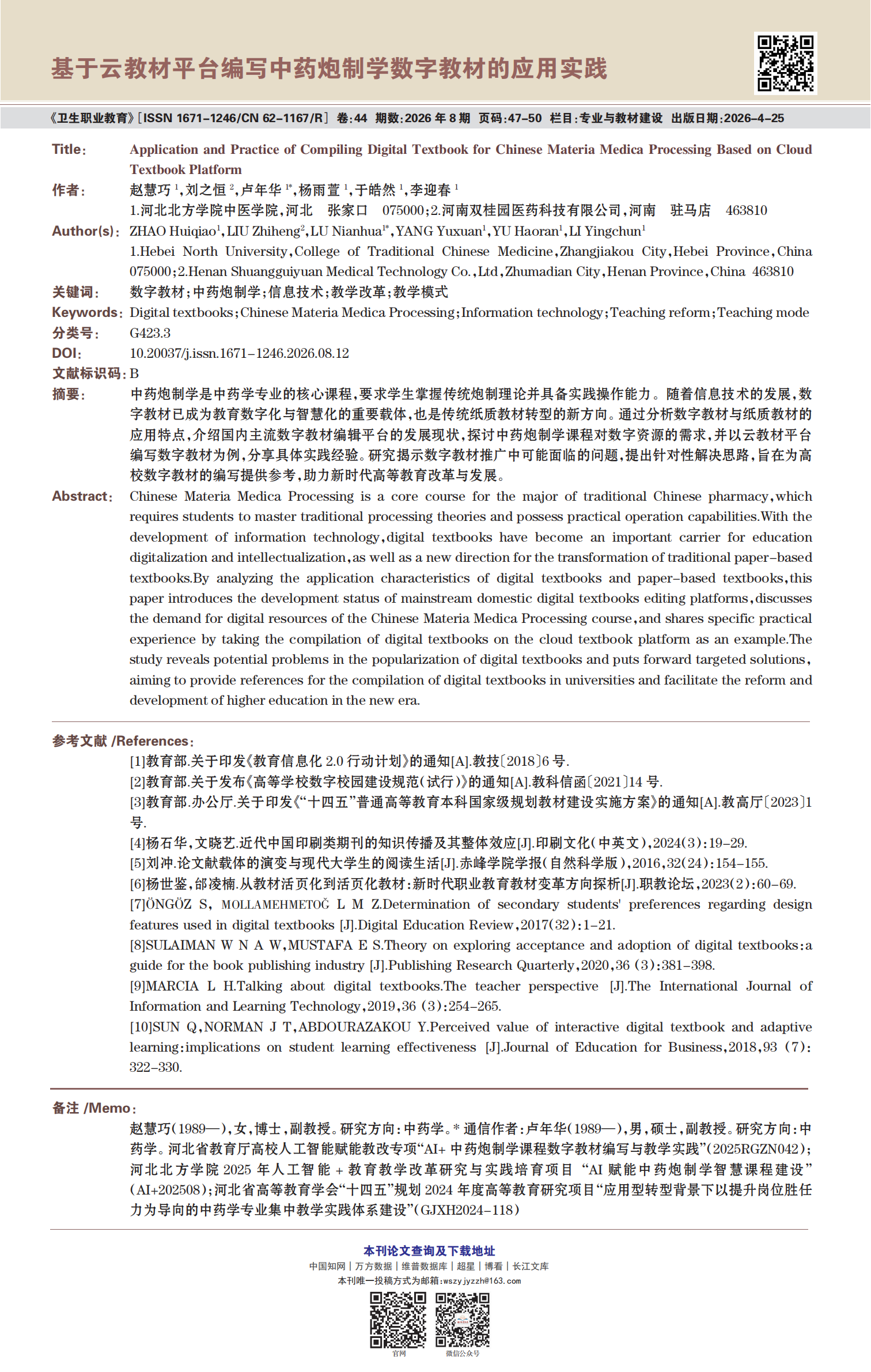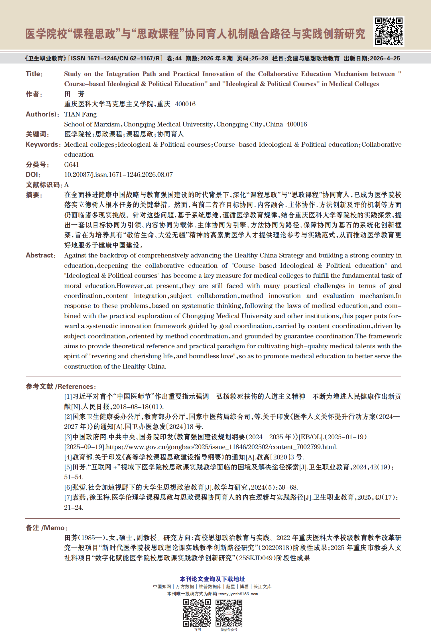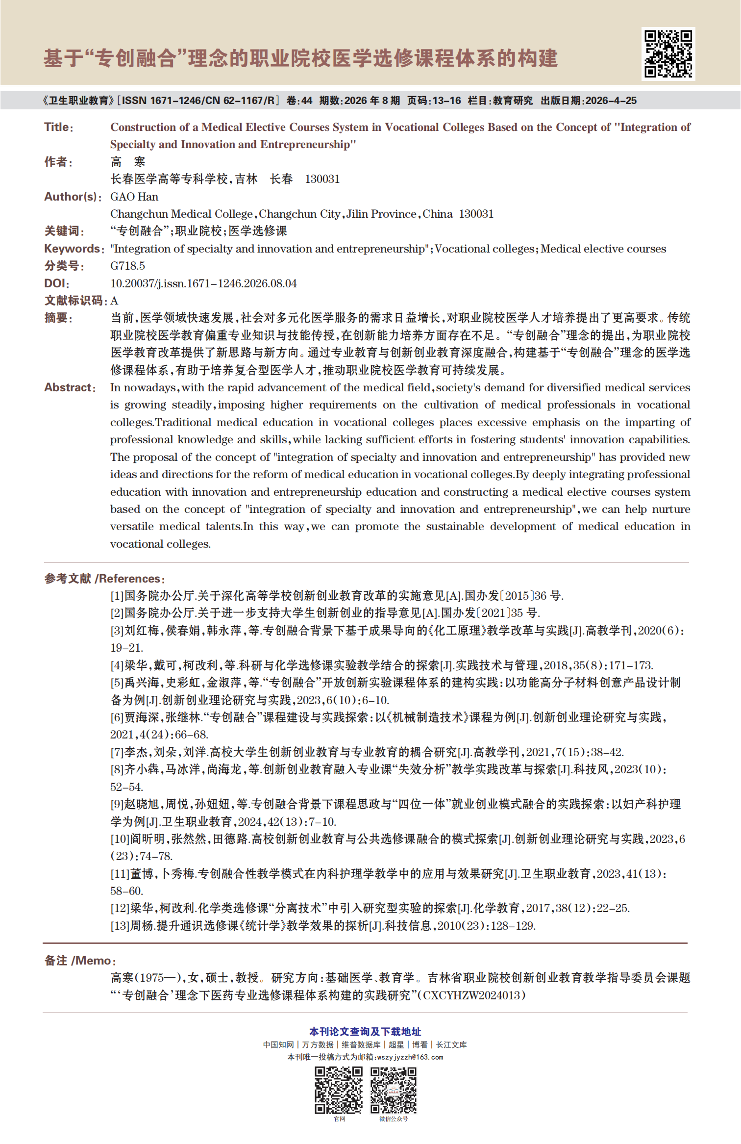 《卫生职业教育》2026年第8期精选论文展示