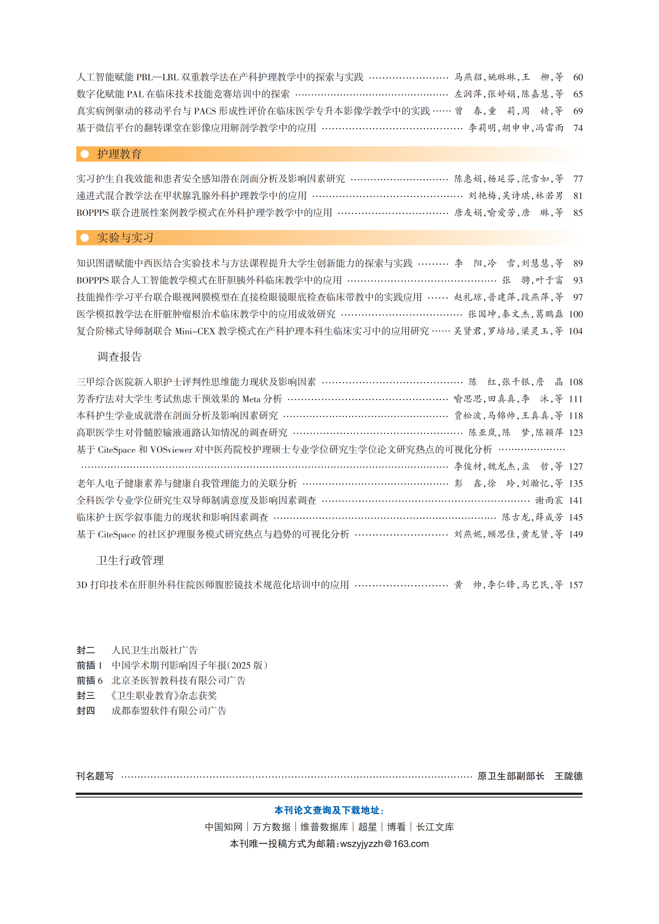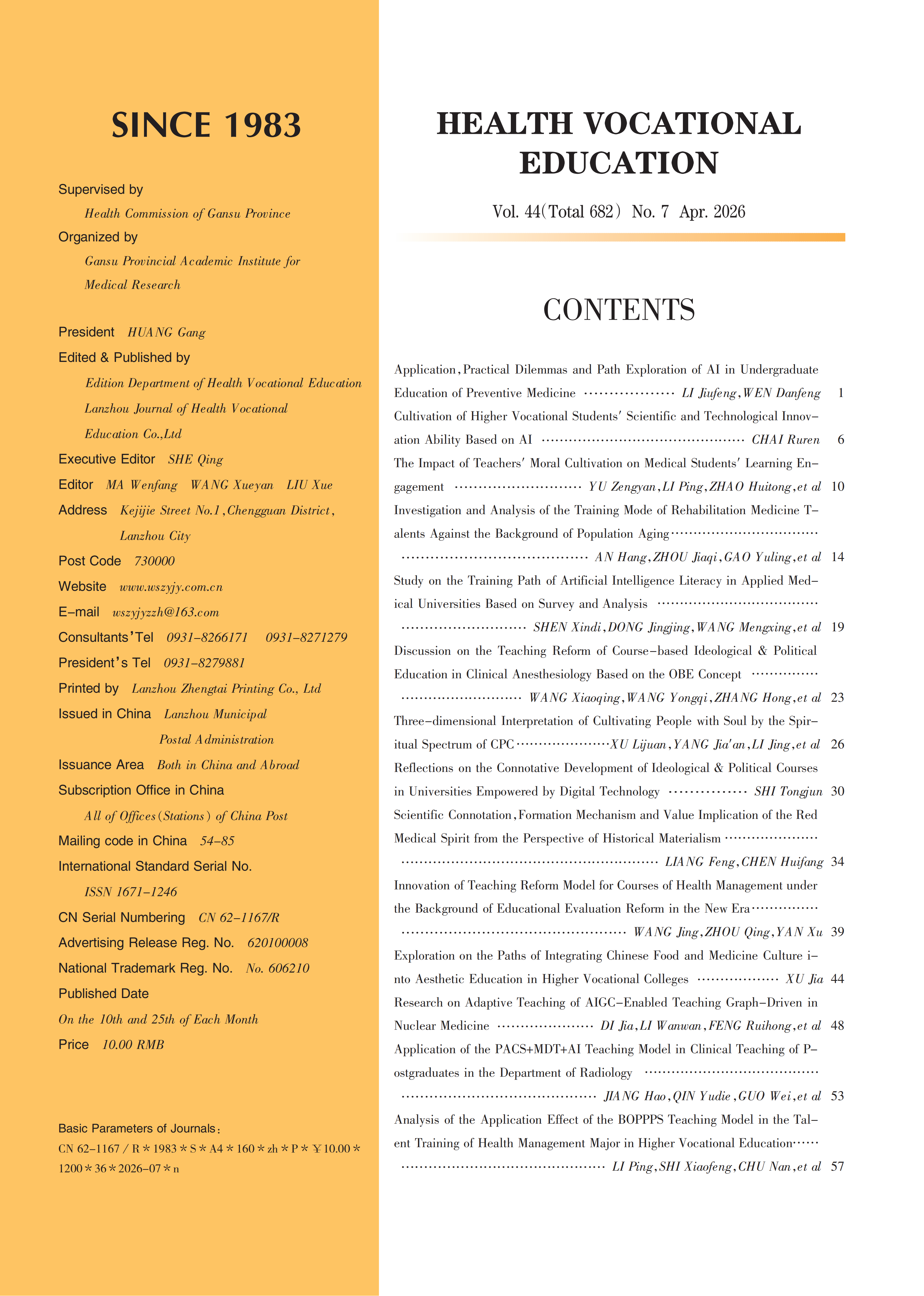 《卫生职业教育》2026年第7期封面目录