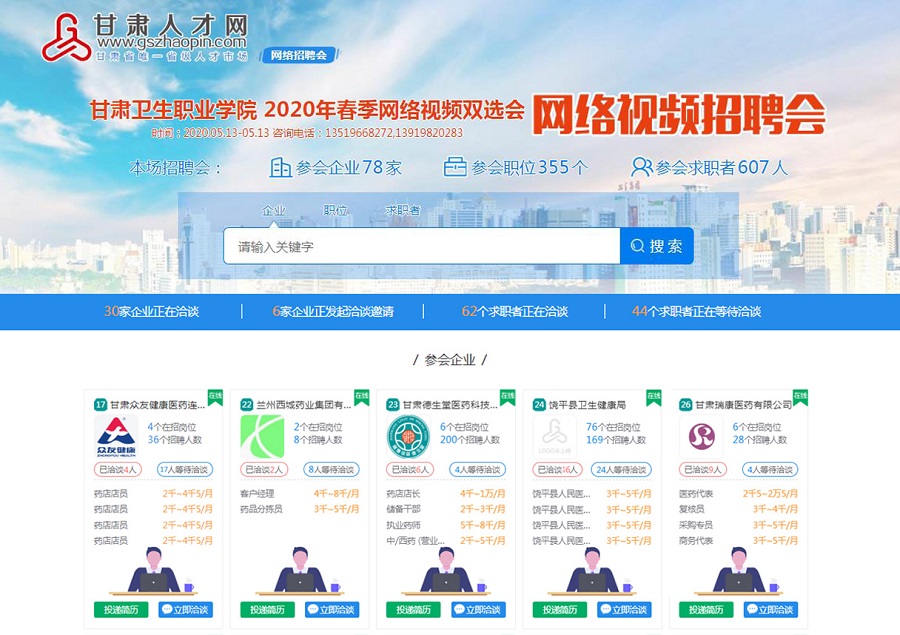 我校2020年春季网络视频双选会在“甘肃人才网”成功举办发布时间:2020-05-15 -