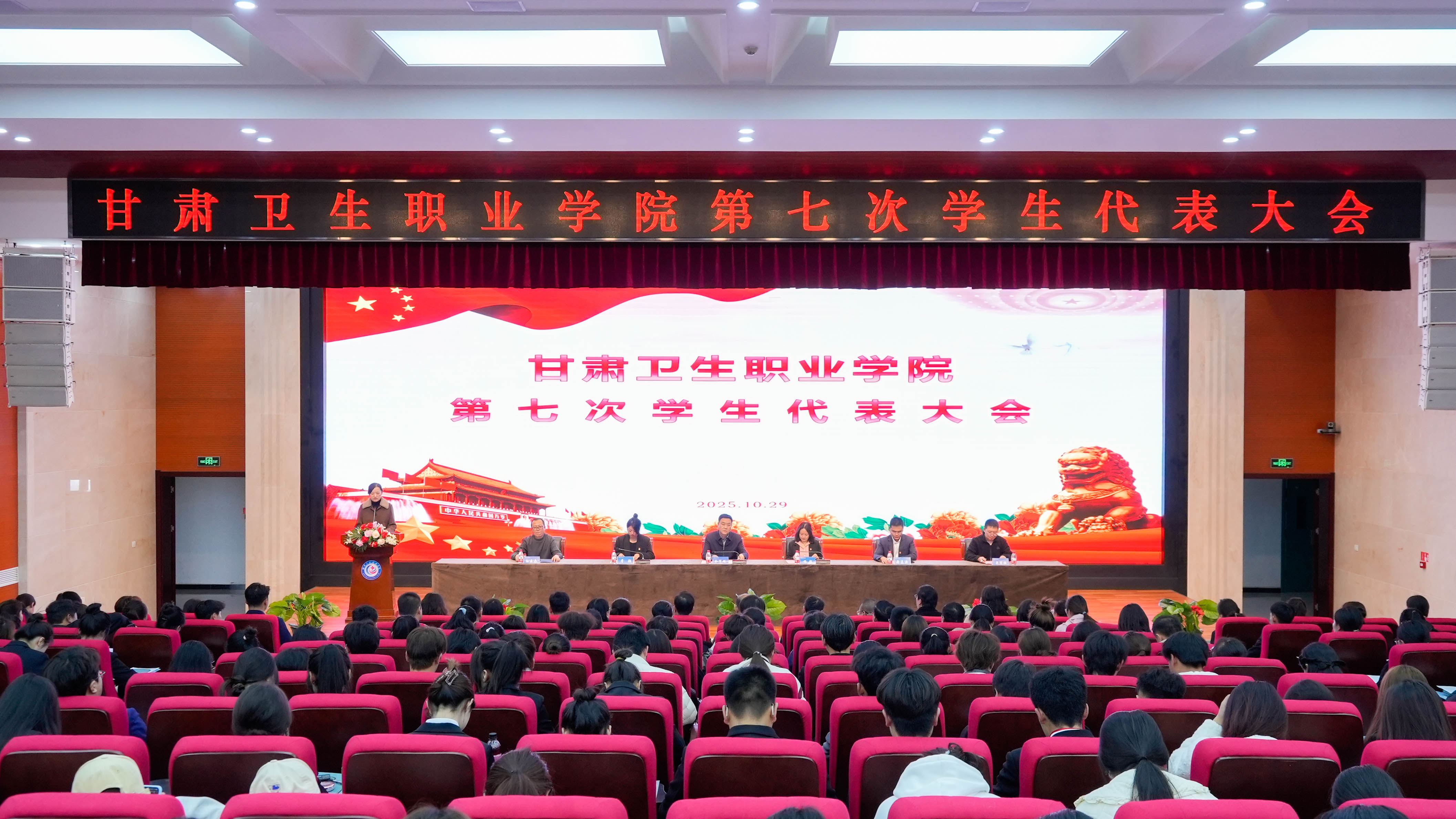 10月29日下午,甘肃卫生职业学院第七次学生代表大会在笃学楼学术报告厅开幕。学校党委书记令军辉、副院长杨频出席大会开幕式。