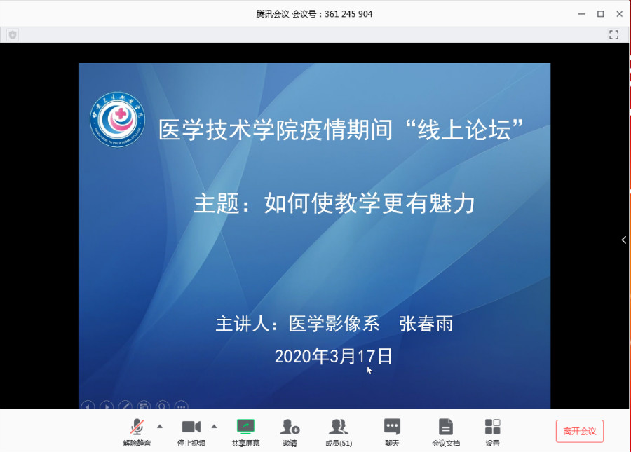 为有效务实地落实学校疫情防控期间“线上办公、线上教学”的工作安排,助推学院在疫情防控期间的各项工作积极向上开展,使学院的建设发展不停步、不减效,取得学院疫情防控和常规建设发展工作两手抓、两不误、两促进的良好效果,医学技术学院决定开展以“同心抗疫共克时艰”为主题的抗疫行动线上系列专题活动,并于3月17日下午举办了系列活动启动仪式,学院全体专兼职教师和辅导员(班主任)参加,活动由学院党总支书记王义安主持。