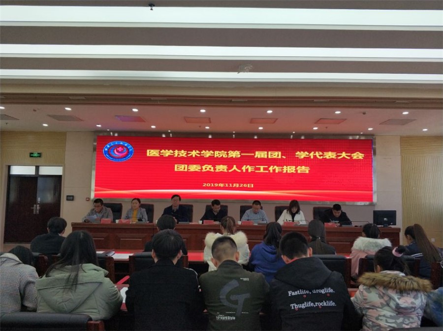 根据《中国共产主义青年团章程》的规定和学校党委的安排医学技术学院于11月26日下午2:30在学校办公楼8楼会议室召开了第一届团员、学生会代表大会。副校长黄刚、医学技术学院院长张志钢、党总支副书记郭艳玲等老师以及255名团学代表参加了会议。会议由党总支书记王义安主持。