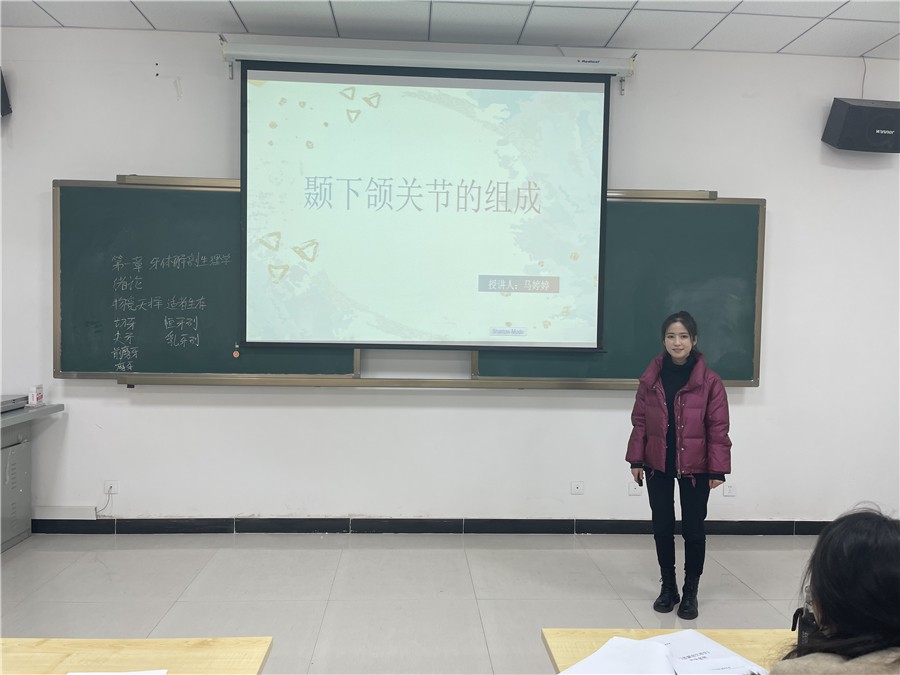 新进教师陈璇和外请教师马婷婷二人结合自己下学期授课课程《口腔解剖生理学》,利用板书和PPT分别进行了30分钟的教学展示。陈璇试讲内容为《牙的演化》,她在课前认真备课、精心准备,熟悉教学内容,能够脱稿讲授,条理清晰。马婷婷试讲内容为《颞下颌关节》,她精神饱满、教态亲切,语言生动,营造了轻松活跃的课堂氛围。二人均完成了预期的教学目标。