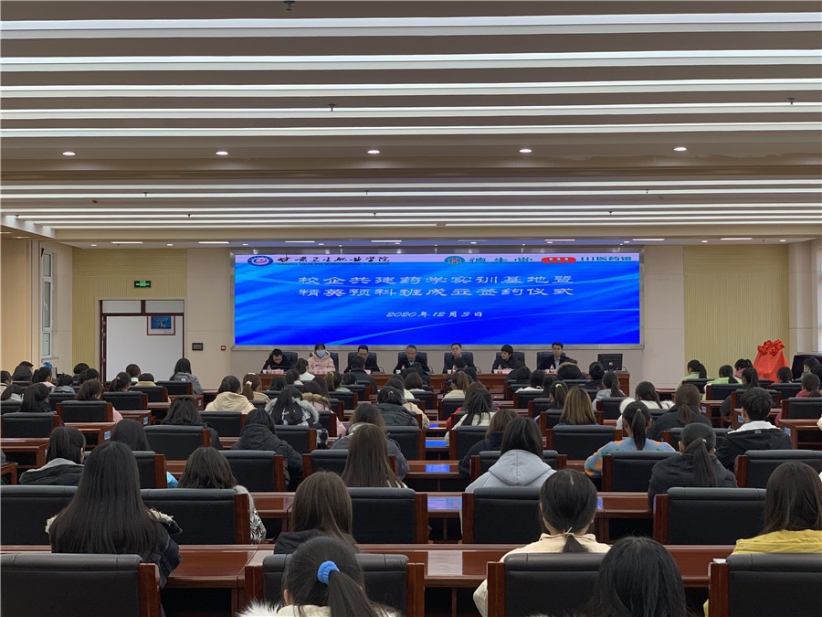 12月3日下午4点30分,甘肃卫生职业学院中医药学院与甘肃德生堂医药科技集团有限公司“校企共建药学实训基地”暨“德生堂精英预科班”签约揭牌仪式在行政楼8楼会议厅举行。仪式由中医药学院院长李钦主持,学校副校长康逢民、甘肃德生堂医药科技集团有限公司董事长助理张有亮、人力资源中心经理吴生伟等领导出席,德生堂集团冠名班全体学生及中药、药学专业共200名学生代表参加。
