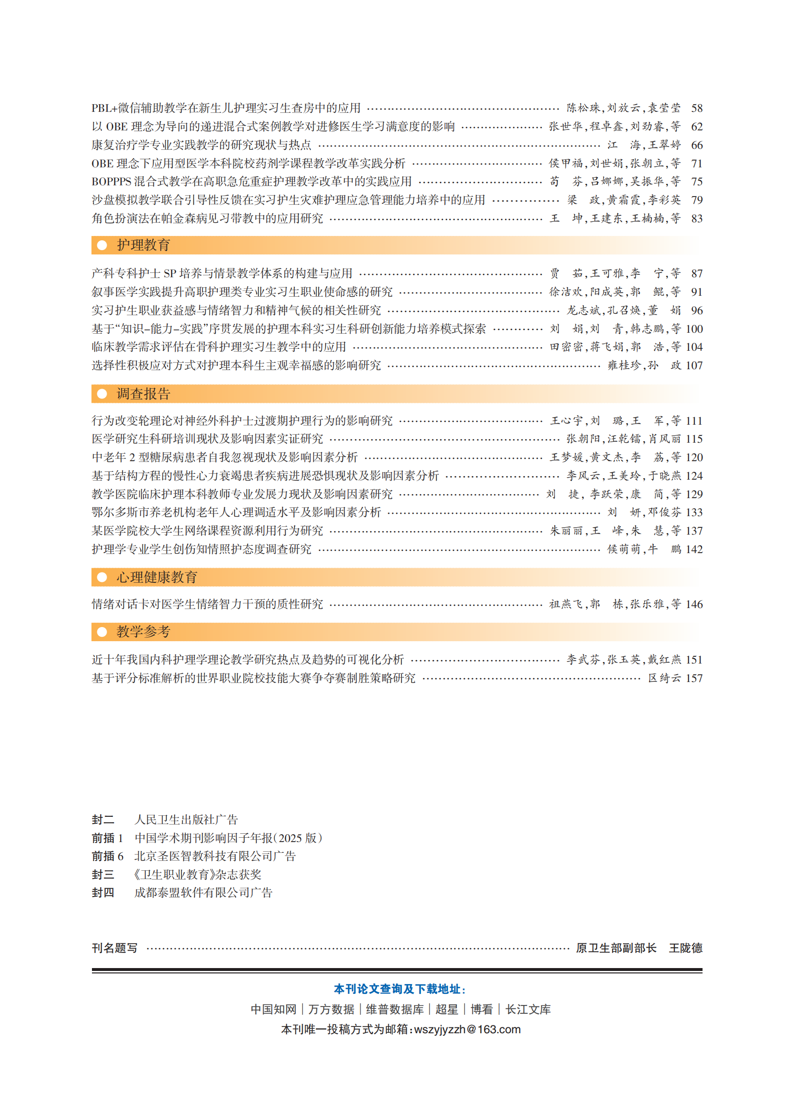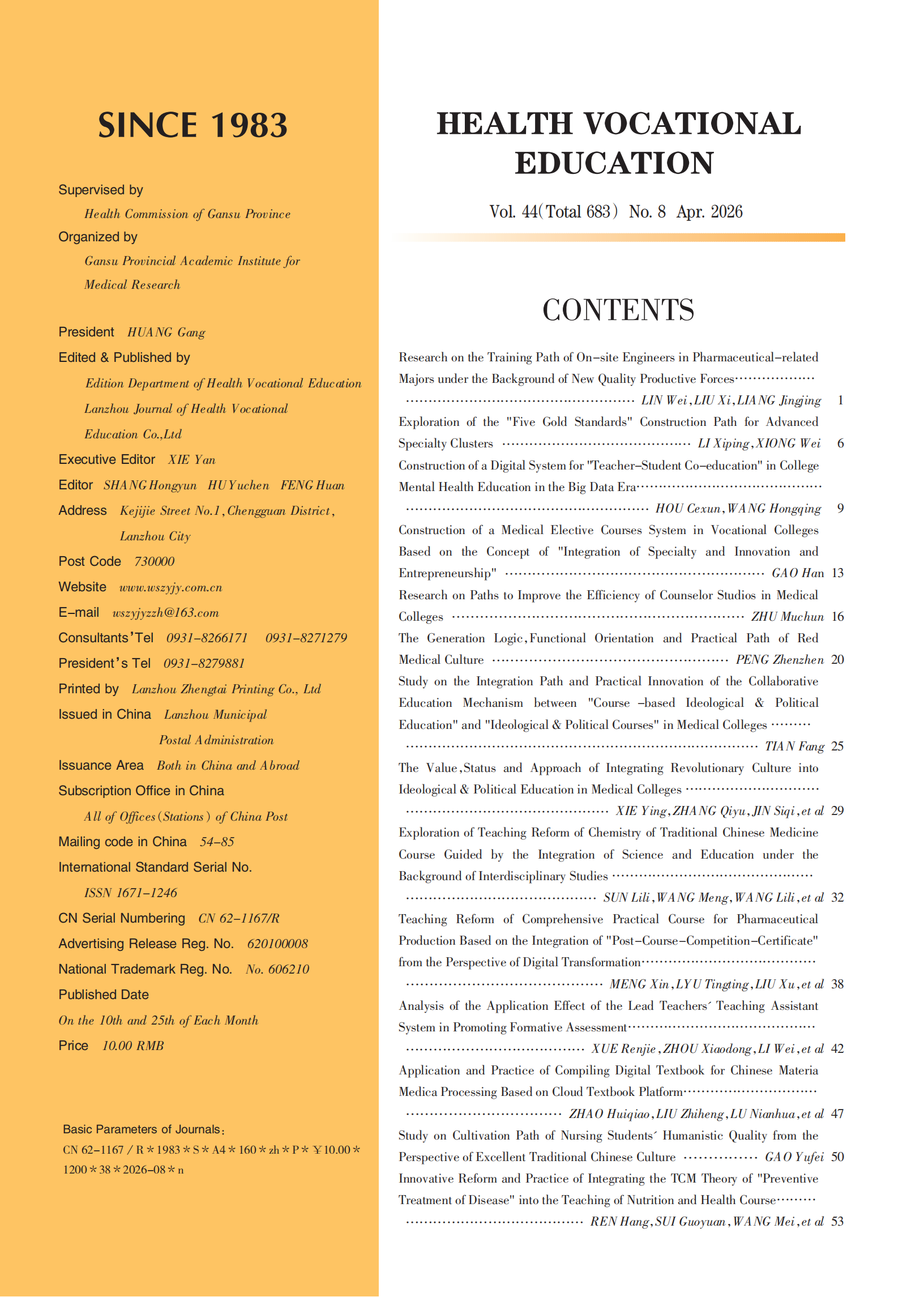 《卫生职业教育》2026年第8期封面目录