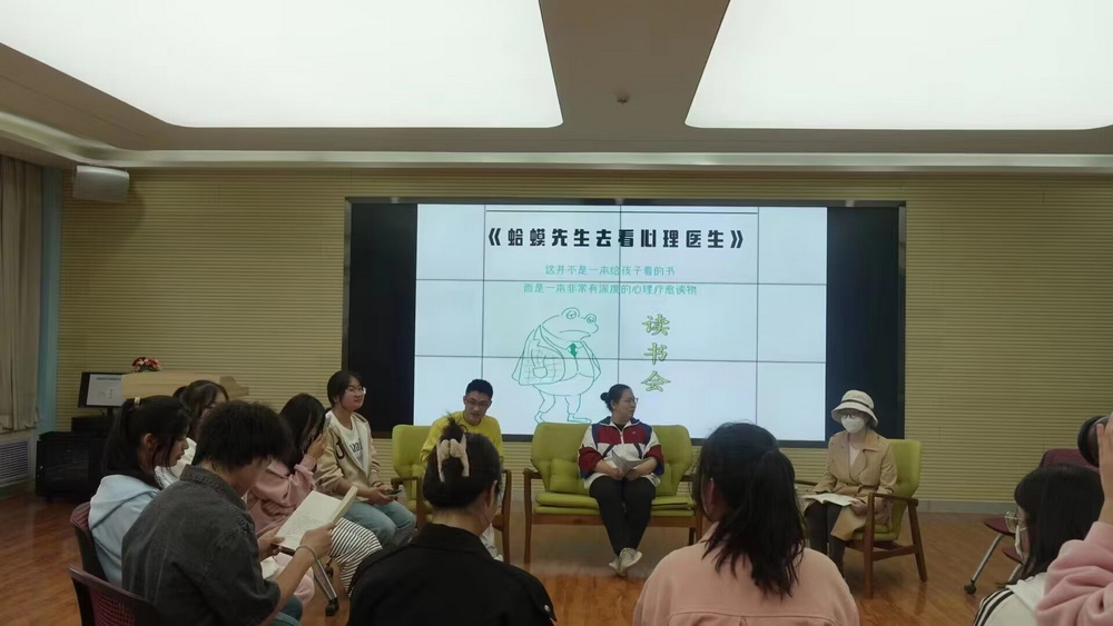 本次读书活动选取心理学书籍《蛤蟆先生去看心理医生》,用四周的时间进行精读,让学生们在读书的过程中见证疗愈和改变的发生,学习探索自己内心世界的方法。读书会上,同学们分享自己的读书心得,提出自己的不解和困惑,在积极探讨中得到答案。书香浸润心灵,阅读点亮人生,四周的时间可以让参与者慢慢地沉浸其中,体验书中的故事,理解其中的心理知识,提高心理健康意识,从而强大内心。