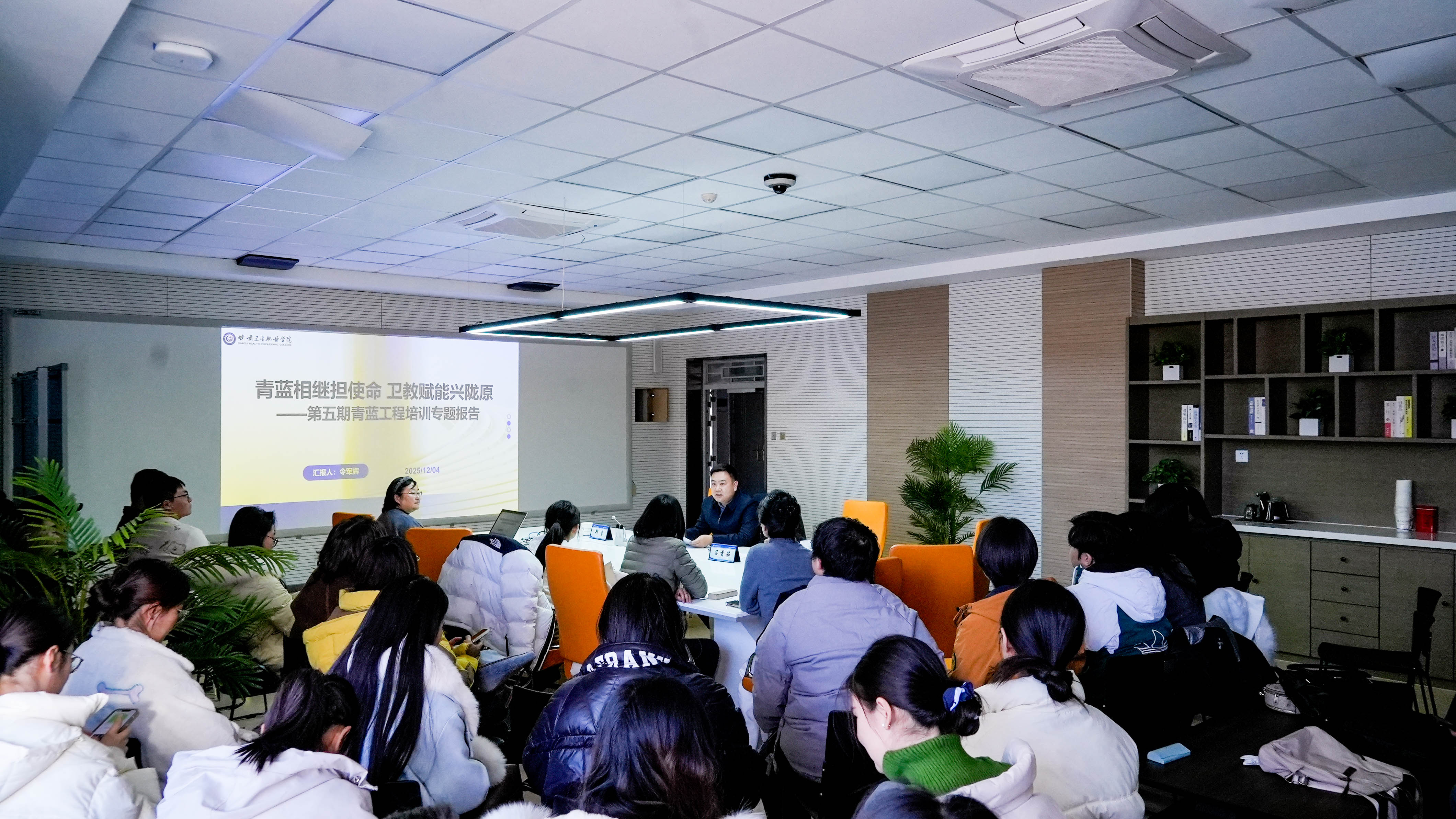 座谈会后,令军辉为“青蓝工程”第五期学员做了题为《青蓝相继担使命 卫教赋能兴陇原》的培训讲座,他围绕学校“立足甘肃、服务基层、聚焦健康、赋能产业”的总体使命,系统阐释了对学校发展思考的“四个定位”“五大任务”,并向青年教师提出六点期望:一要锚定使命担当,做教育报国的践行者;二要坚守立德树人,做学生成长的引路人;三要深耕专业建设,做产业需求的响应者;四要深化产教融合,做协同育人的创新者;五要提升教学质量,做“三教”改革的推动者;六要拓展社会服务,做健康甘肃的贡献者。令军辉书记勉励全体青年教师,将个人发展融入学校与甘肃卫生健康事业大局,勇担培育人才、服务陇原的时代重任。