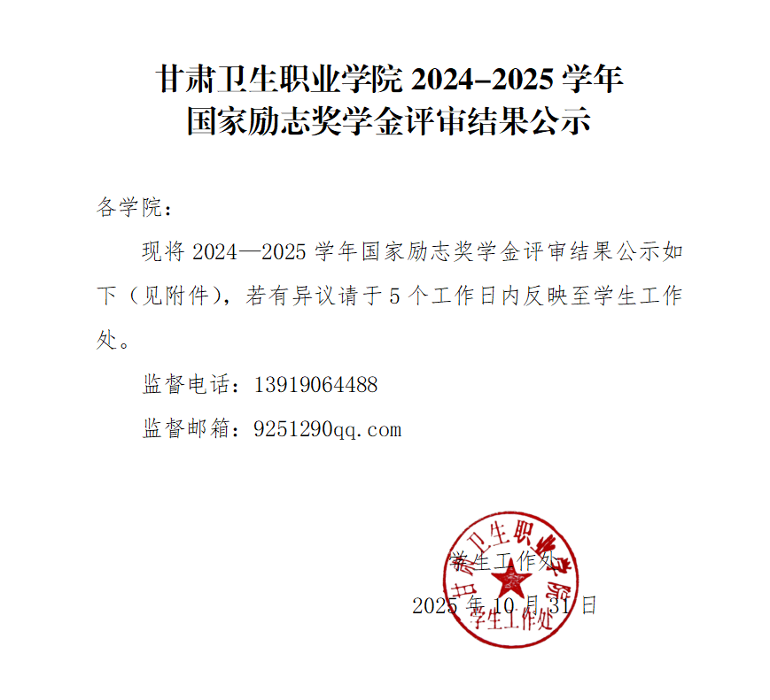 附件:甘肃卫生职业学院励志奖学金公示名单