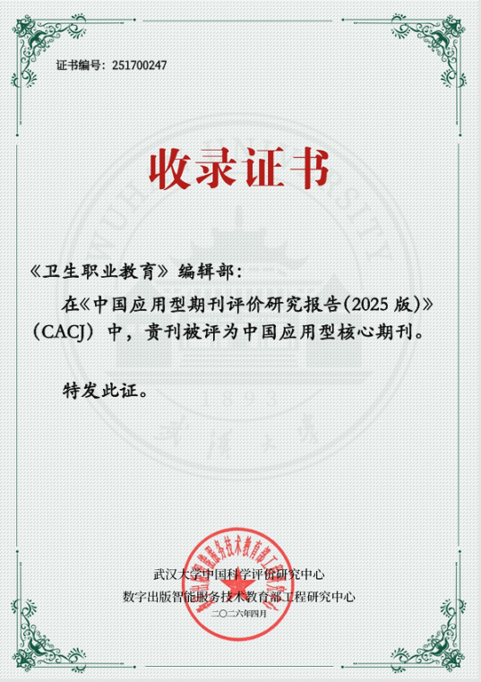经综合评价,《卫生职业教育》入选中国应用型核心期刊。
