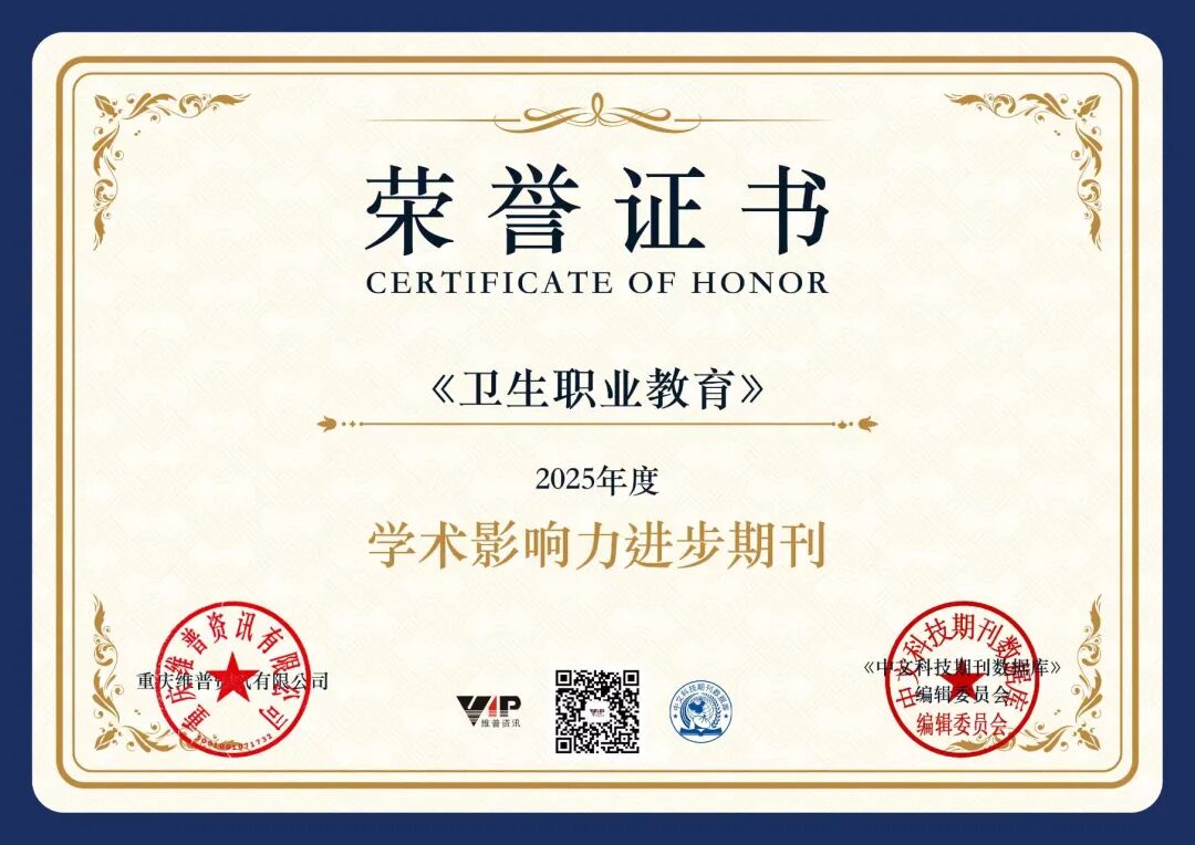 在2025年度维普网《中文科技期刊数据库》期刊年度行业评选中,获得“学术影响力进步期刊”荣誉,彰显了《卫生职业教育》在学术质量和影响力上的显著突破。