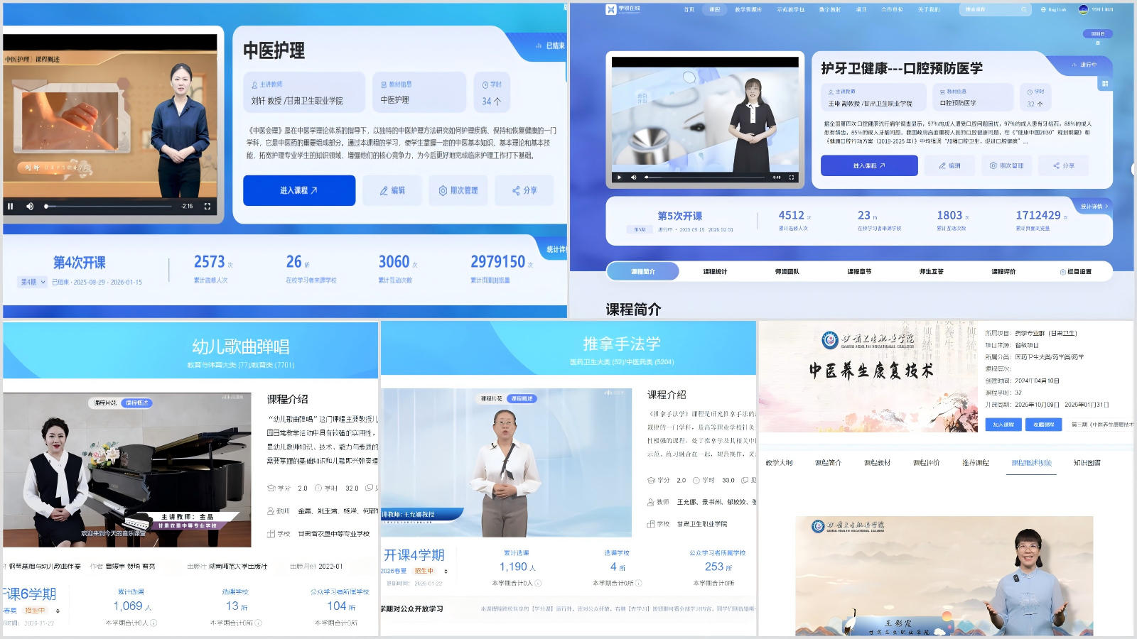 此次入选的课程紧密贴合卫生健康行业发展需求,深度融合前沿技术与岗位标准,充分展现了学校的专业特色与教学实力。王琳教授团队的《护牙卫健康—口腔预防医学》、刘轩教授团队的《中医护理》、王允娜教授团队的《推拿手法学》、金晶老师团队的《幼儿歌曲弹唱》、王彩霞老师团队的《中医养生康复技术》,围绕口腔健康、中医护理、基层医疗服务、康养护理等民生需求,强化实践技能培养,助力学生全方位提升岗位胜任力。