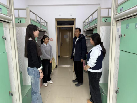 走访中,王东与同学们亲切交谈,详细询问假期生活、返校适应情况及新学期学习计划,叮嘱同学们注意宿舍通风和卫生,尽快调整状态投入新学期学习。辅导员们同步开展安全隐患排查和消防安全、反诈防骗宣传教育,对发现的问题进行现场督促整改。