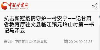 新冠疫情发生以来,我校四名驻村扶贫干部坚守在基层防疫第一线,扎实开展疫情防控工作,守护村民安全,赢得了村民的认可,近日,陇南日报、兰州晨报、中国甘肃网、今日头条等多家媒体转发和报道了我校驻村干部马泽云的事迹。