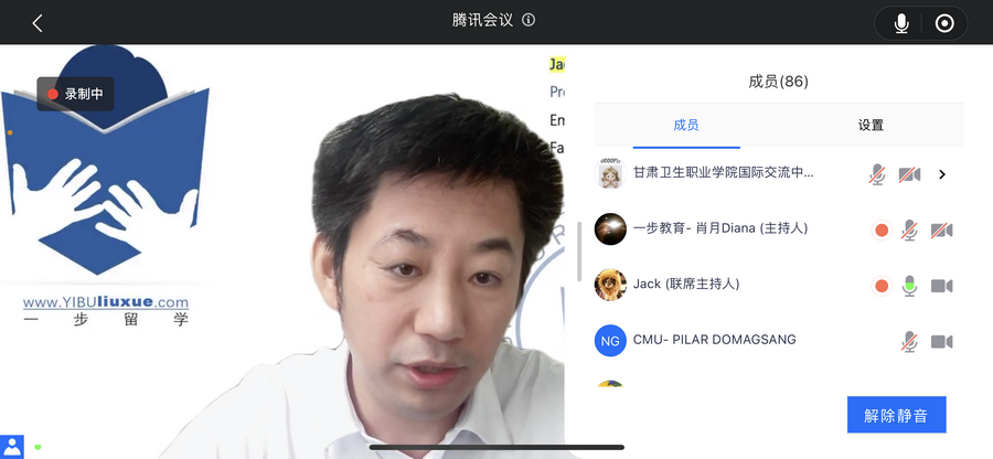 6月17日,由菲律宾国家大学主办,一步教育集团承办的“口腔医学专业3+3专升本项目”合作交流会以线上视频形式召开。交流会主会场设在菲律宾国家大学,学校设分会场,国际交流中心主任周丽凤、医学技术学院院长吕荣光国际交流中心副主任巩佩颜、医学技术学院副书记郭艳玲、医学技术学院口腔教研室主任王琳及相关人员参加了会议。交流会由一步教育集团董事长孟兵主持。