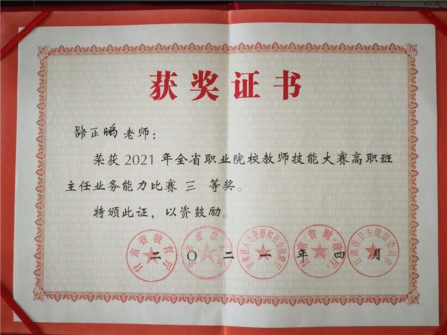 我校辅导员路正鹏老师在2021年全省职业院校教师技能大赛中喜获佳绩发布时间:2021-05-21 -