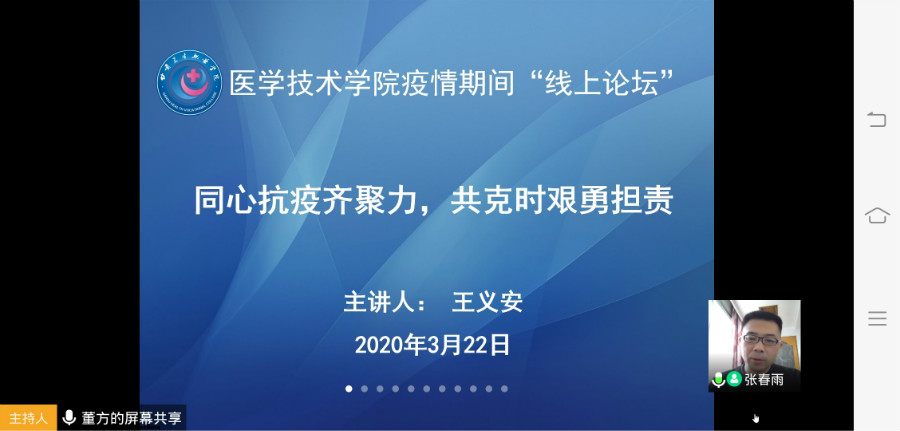 同心抗疫齐聚力 共克时艰勇担责——医学技术学院举办疫情期间“线上论坛”第三讲发布时间:2020-03-25 -