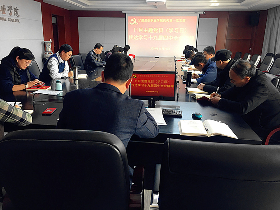 机关第一党支部传达学习十九届四中全会精神发布时间:2019-11-20 -